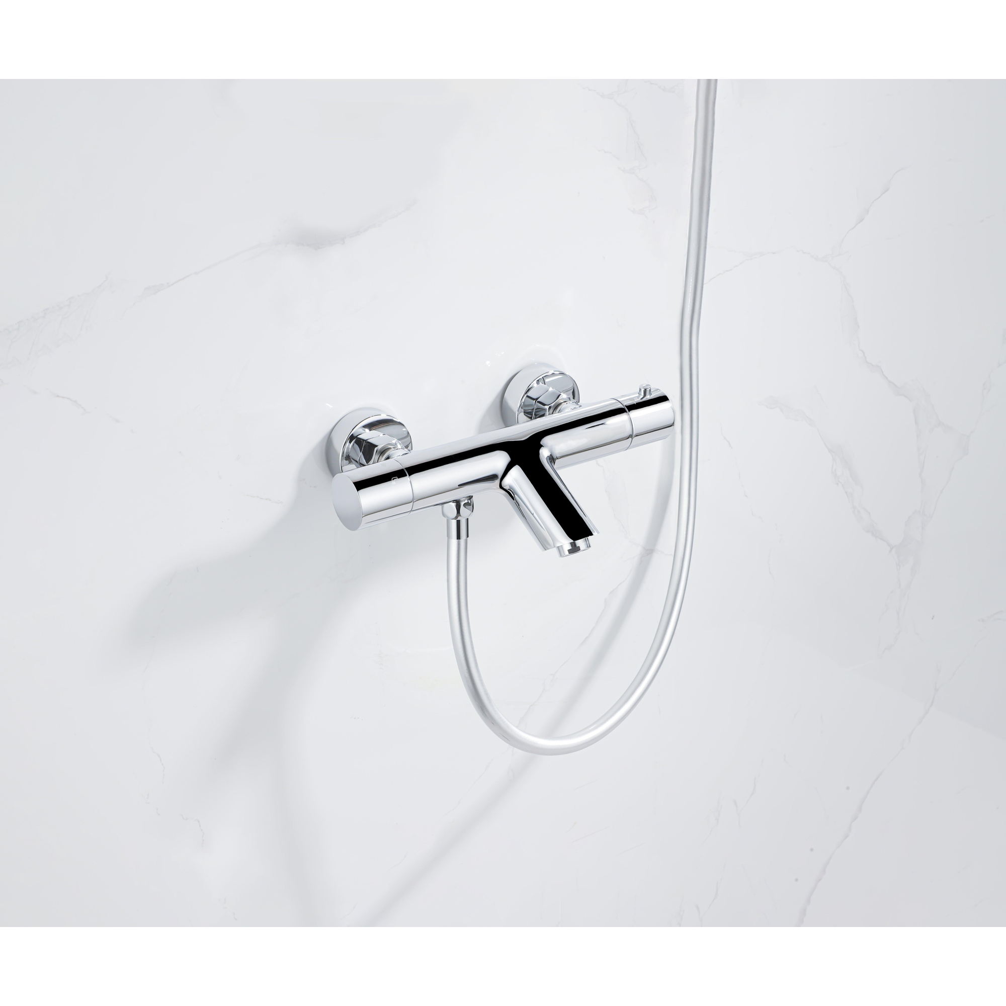 De Fortifura Calvi Thermostatische Badkraan onderscheidt zich door zijn stijlvolle design. De combinatie van de strakke lijnen en de glanzende chroomafwerking zorgt voor een tijdloze uitstraling. Deze badkraan voegt een vleugje luxe toe aan je badkamer en creëert een sfeer van verfijning en klasse.