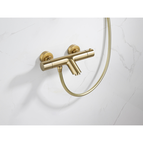 De Fortifura Calvi Thermostatische Badkraan straalt stijl en klasse uit dankzij zijn geborsteld messing PVD afwerking. Deze afwerking zorgt niet alleen voor een luxe uitstraling, maar is ook duurzaam en gemakkelijk te onderhouden. De strakke lijnen en moderne vormgeving van deze badkraan maken hem perfect voor zowel moderne als klassieke badkamers. Creëer een sfeer van elegantie en verfijning met deze prachtige badkraan.