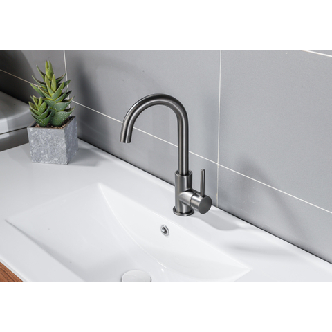De Fortifura Calvi Wastafelmengkraan straalt stijl en klasse uit dankzij zijn hoogwaardige ontwerp en Gunmetal PVD afwerking. De kraan past perfect bij zowel moderne als klassieke badkamers en voegt een vleugje elegantie toe aan elke ruimte. Met zijn slanke vormgeving en draaibare uitloop biedt deze kraan niet alleen functionaliteit, maar ook een esthetische meerwaarde.