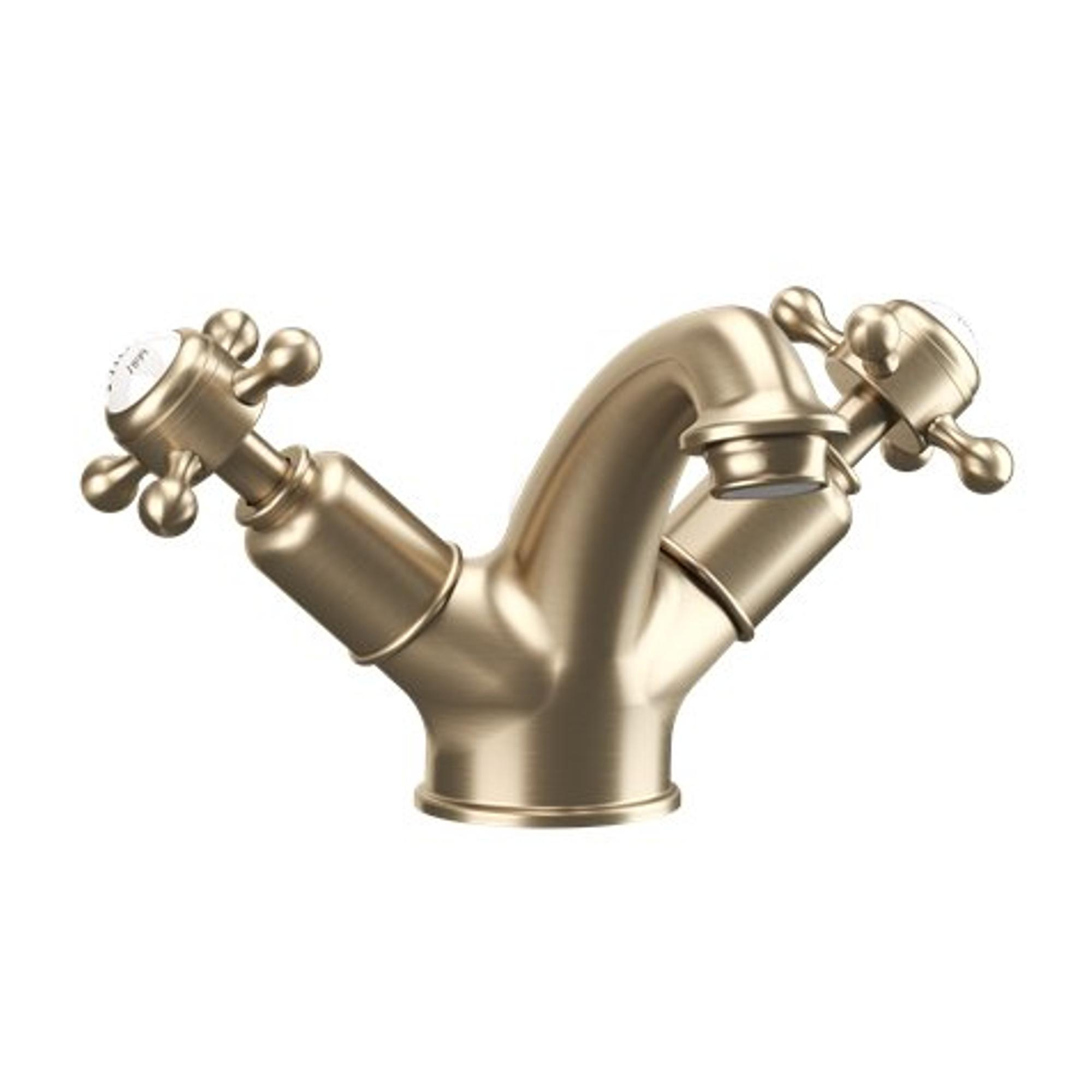 Crosswater Belgravia Wastafelkraan - laag - kruisgreep - zonder waste - geborsteld messing