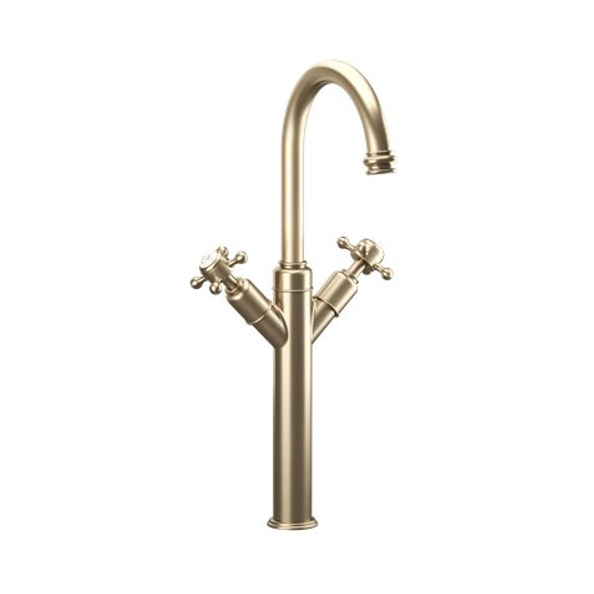 Crosswater Belgravia Wastafelkraan - hoog - zonder waste - uitloop 16.8cm - kruisgreep - geborsteld messing