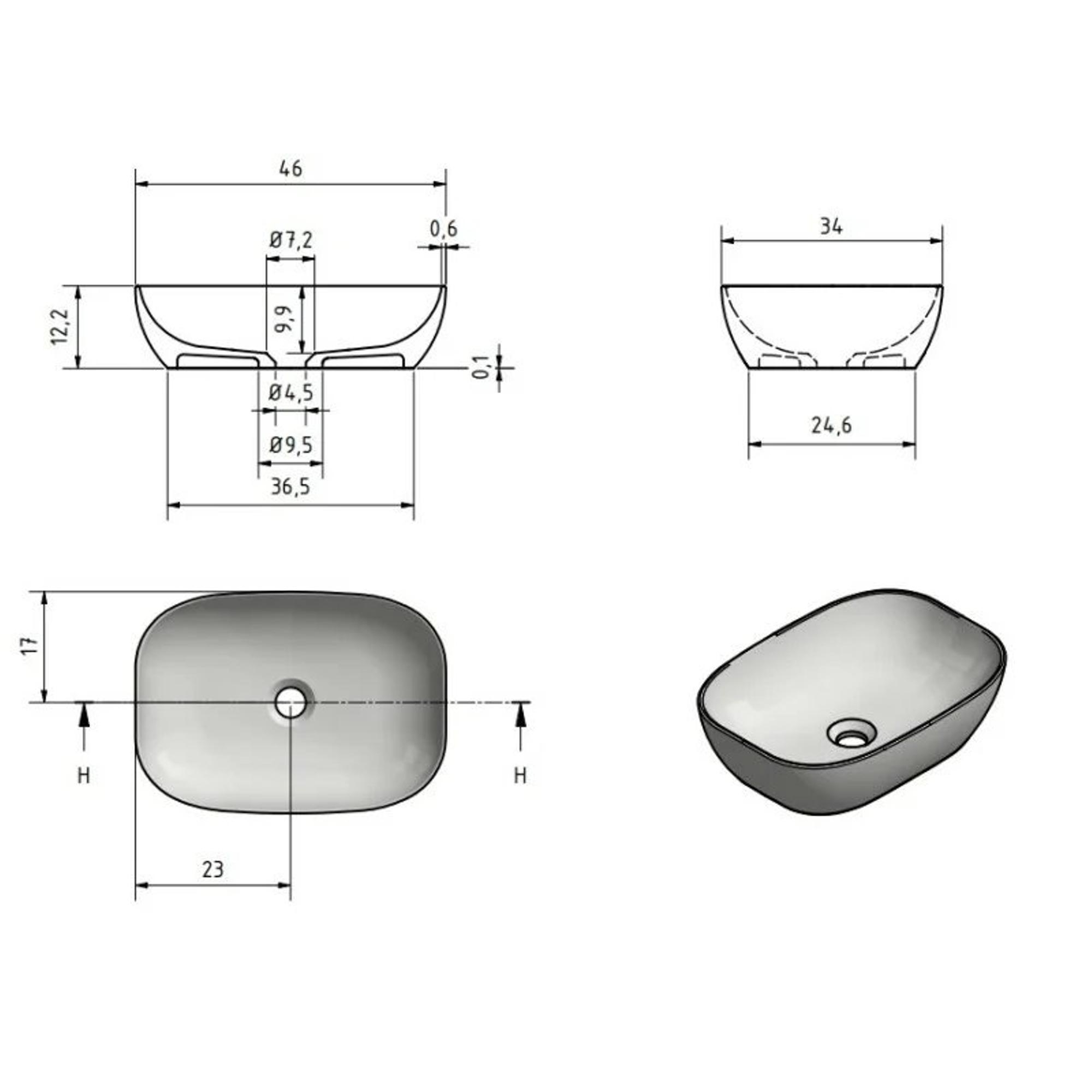By Goof Waskom - opbouw - 46x12.2x34cm - Solid surface - Ovaal - Mat Zwart