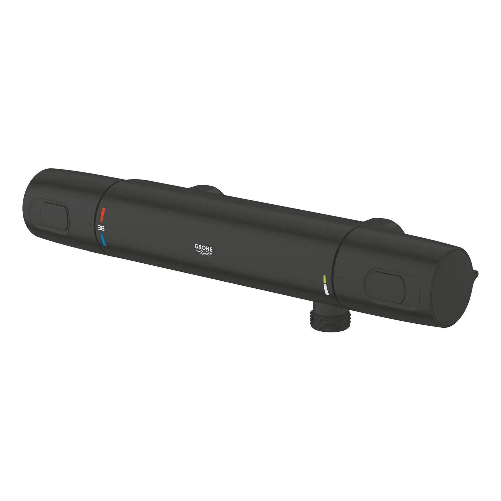 De GROHE Precision Trend QuickFix Douchekraan in mat zwart combineert stijl met geavanceerde technologieën voor een veilige en comfortabele douche-ervaring. Deze thermostatische douchemengkraan is ontworpen om je badkamer een moderne en gedurfde uitstraling te geven, terwijl hij tevens waterbesparende functies biedt.De kraan is voorzien van ergonomische GROHE MetalGrip handgrepen, waardoor de bediening soepel verloopt, zelfs met ingezeepte handen. Dankzij GROHE TurboStat geniet je binnen enkele seconden van de gewenste watertemperatuur, die constant blijft gedurende het douchen. GROHE CoolTouch zorgt ervoor dat de buitenkant van de kraan nooit te warm wordt, zodat je je niet kunt verbranden bij het aanraken.