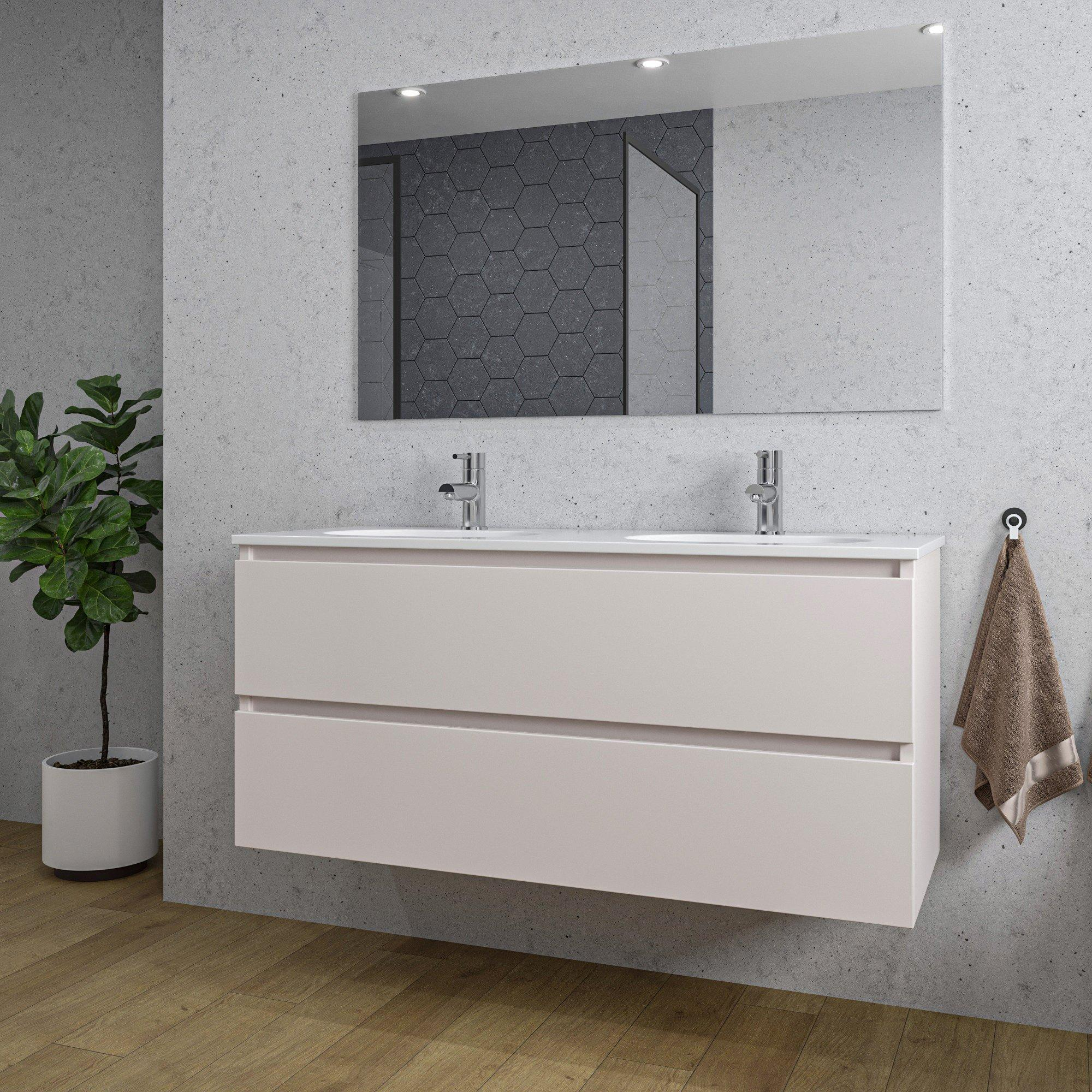 Adema Chaci Badkamermeubelset - 120x46x57cm - 2 ovale keramische wasbakken wit - 2 kraangaten - 2 lades - rechthoekige spiegel - Cotton