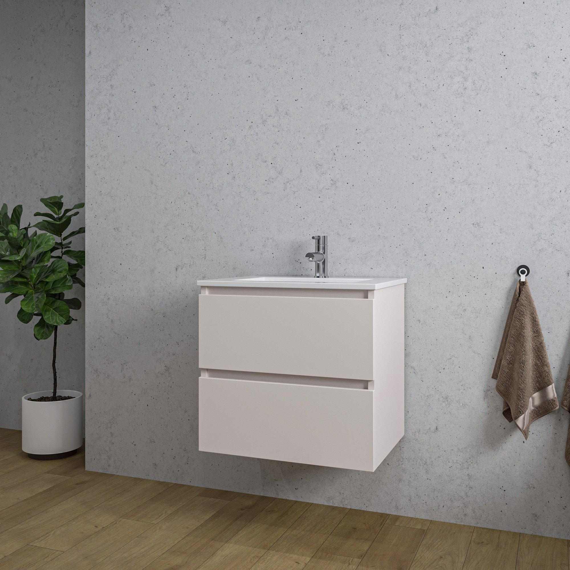 Adema Chaci Badkamermeubelset - 60x46x57cm - 1 keramische wasbak wit - 1 kraangat - 2 lades - mat cotton (beige)