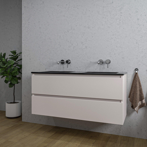 Adema Chaci Badkamermeubelset - 120x46x57cm - 2 keramische wasbakken zwart - zonder kraangaten - 2 lades - mat cotton (beige)
