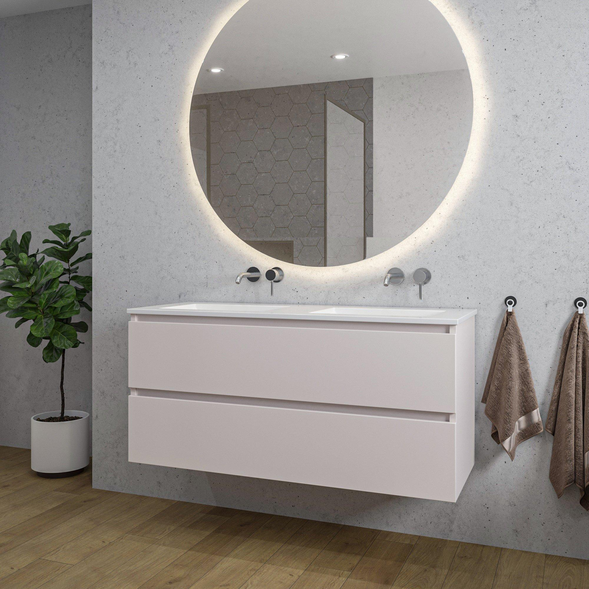 Adema Chaci Badkamermeubelset - 120x46x57cm - 2 keramische wasbakken wit - zonder kraangaten - 2 lades - ronde spiegel met verlichting - mat cotton (beige)