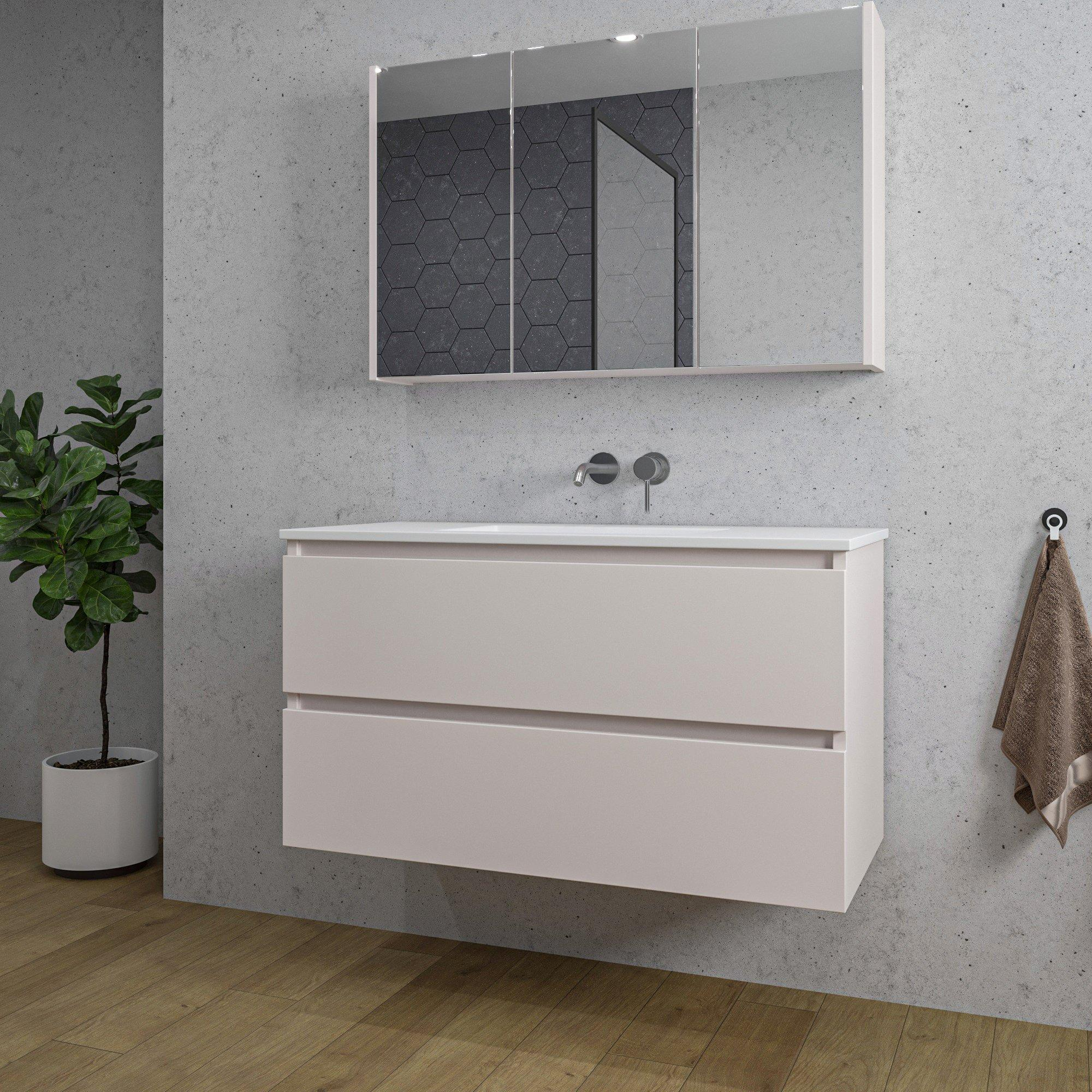 Adema Chaci Badkamermeubelset - 100x46x57cm - 1 keramische wasbak wit - zonder kraangaten - 2 lades - Spiegelkast - cotton