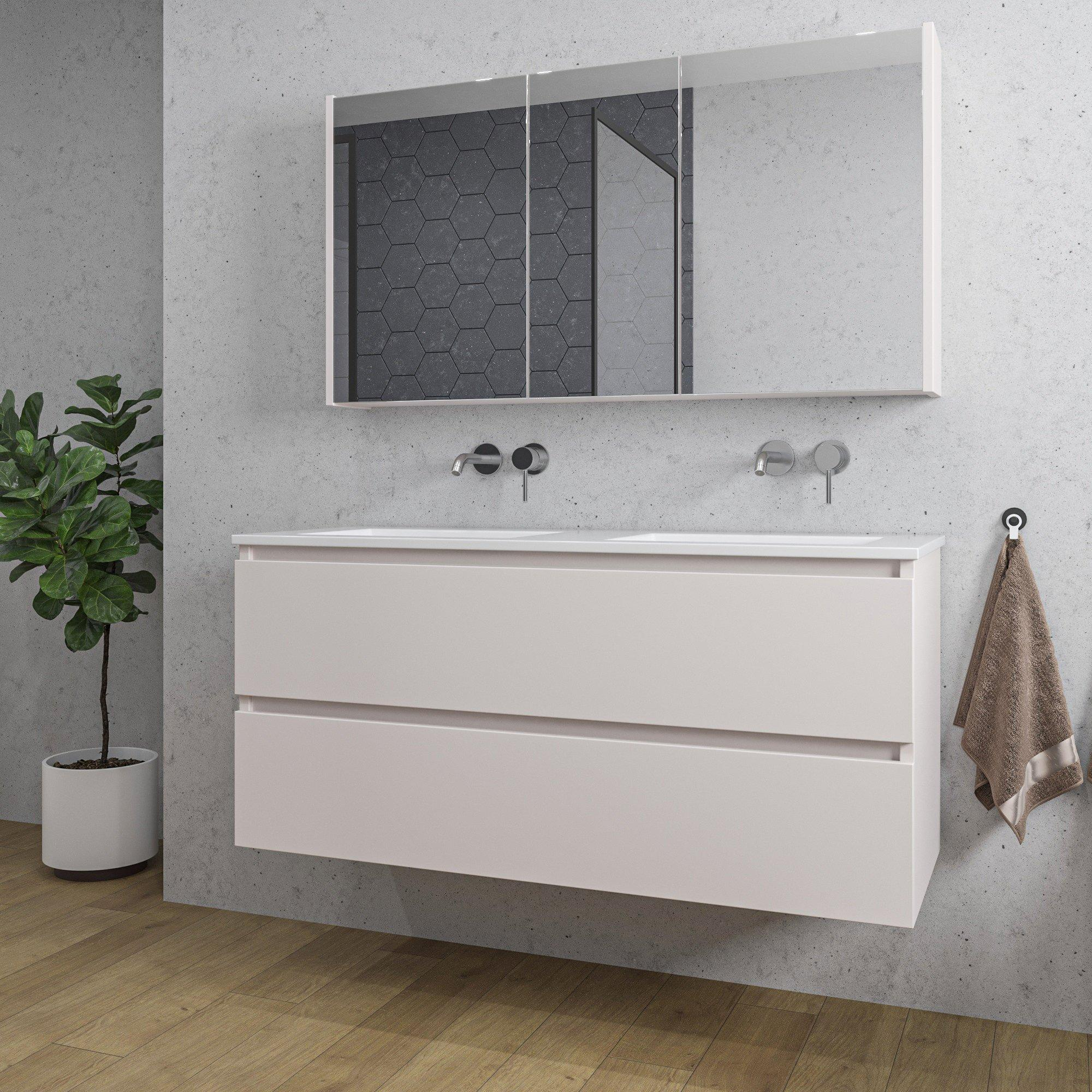 Adema Chaci Badkamermeubelset - 120x46x57cm - 2 keramische wasbakken wit - zonder kraangaten - 2 lades - Spiegelkast - cotton