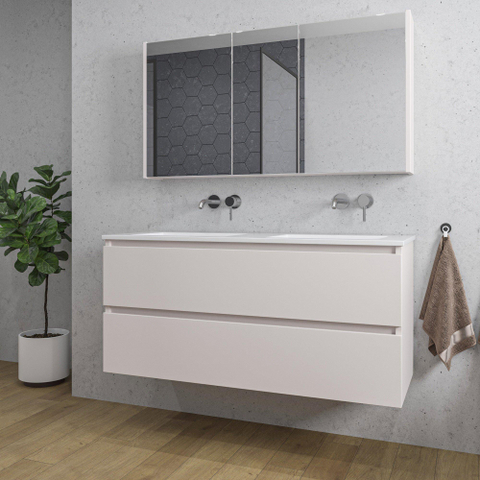 Adema Chaci Badkamermeubelset - 120x46x57cm - 2 keramische wasbakken wit - zonder kraangaten - 2 lades - Spiegelkast - mat cotton (beige)