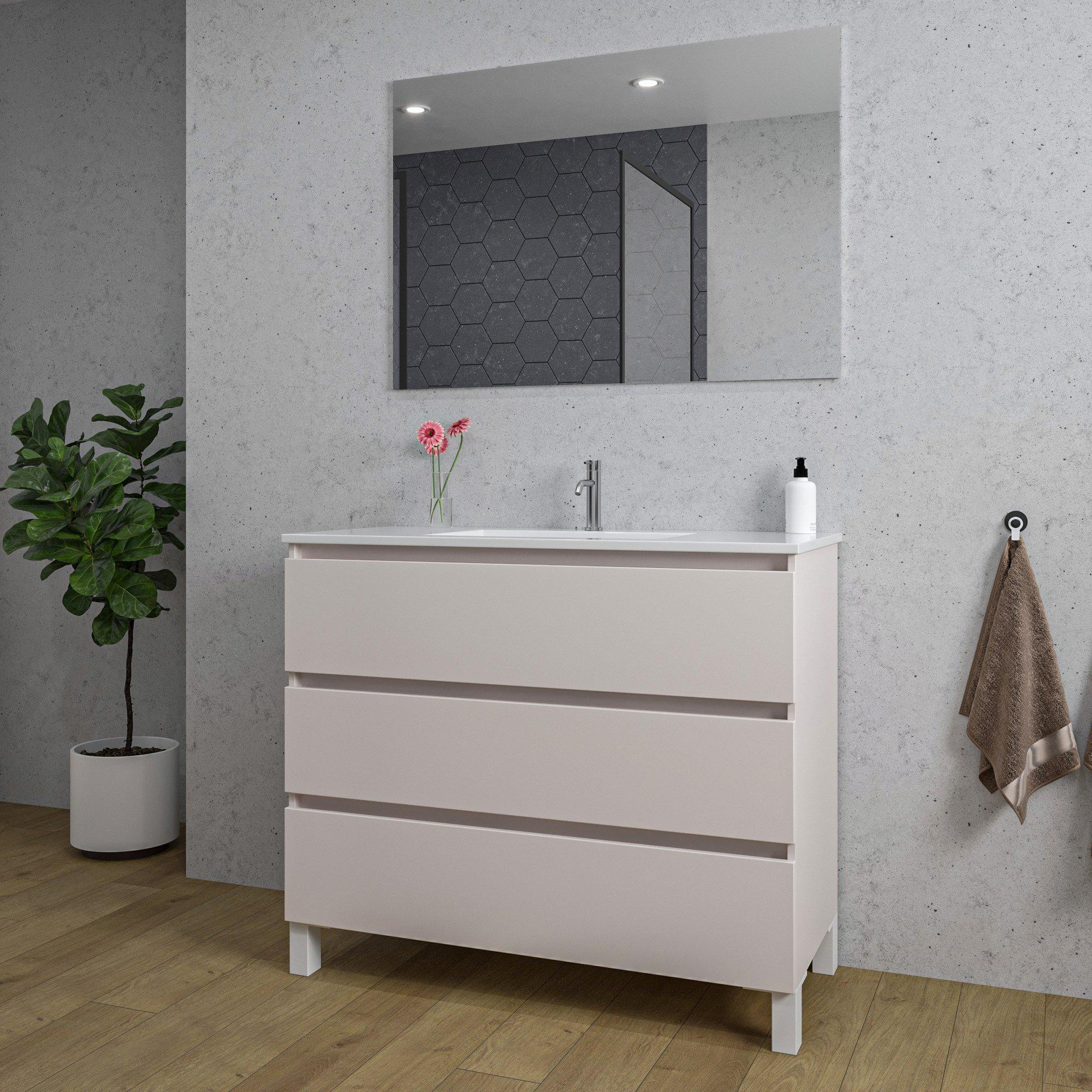 Adema Chaci PLUS Badkamermeubelset - 100x86x46cm - 1 rechthoekige keramische wasbak wit - 1 kraangat - 3 lades - rechthoekige spiegel - mat cotton (beige)