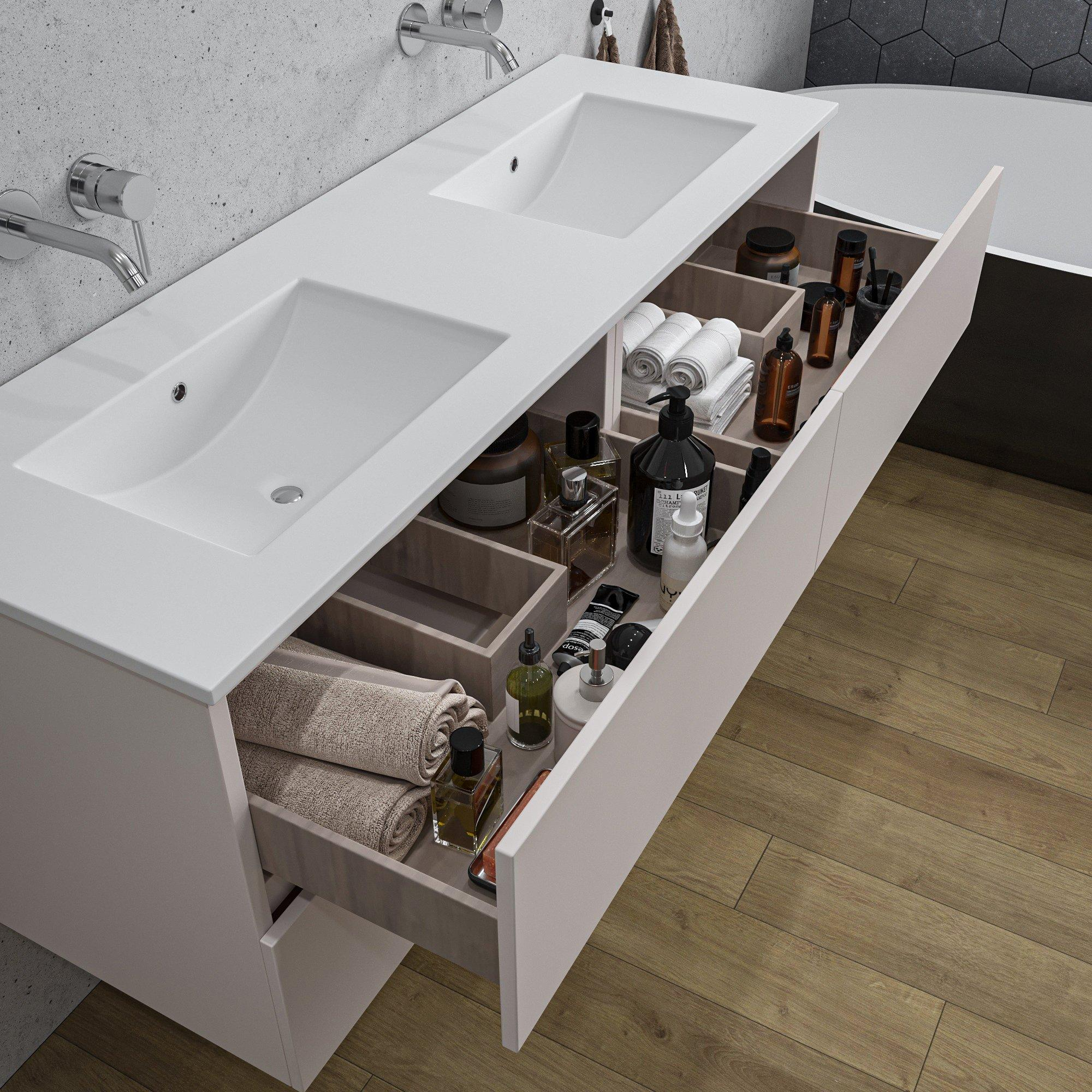 Adema Chaci Badkameronderkast - 140cm - 4 lades - greeploos - wit keramieke wastafel - overloop - 2 wasbakken - zonder kraangaten - cotton