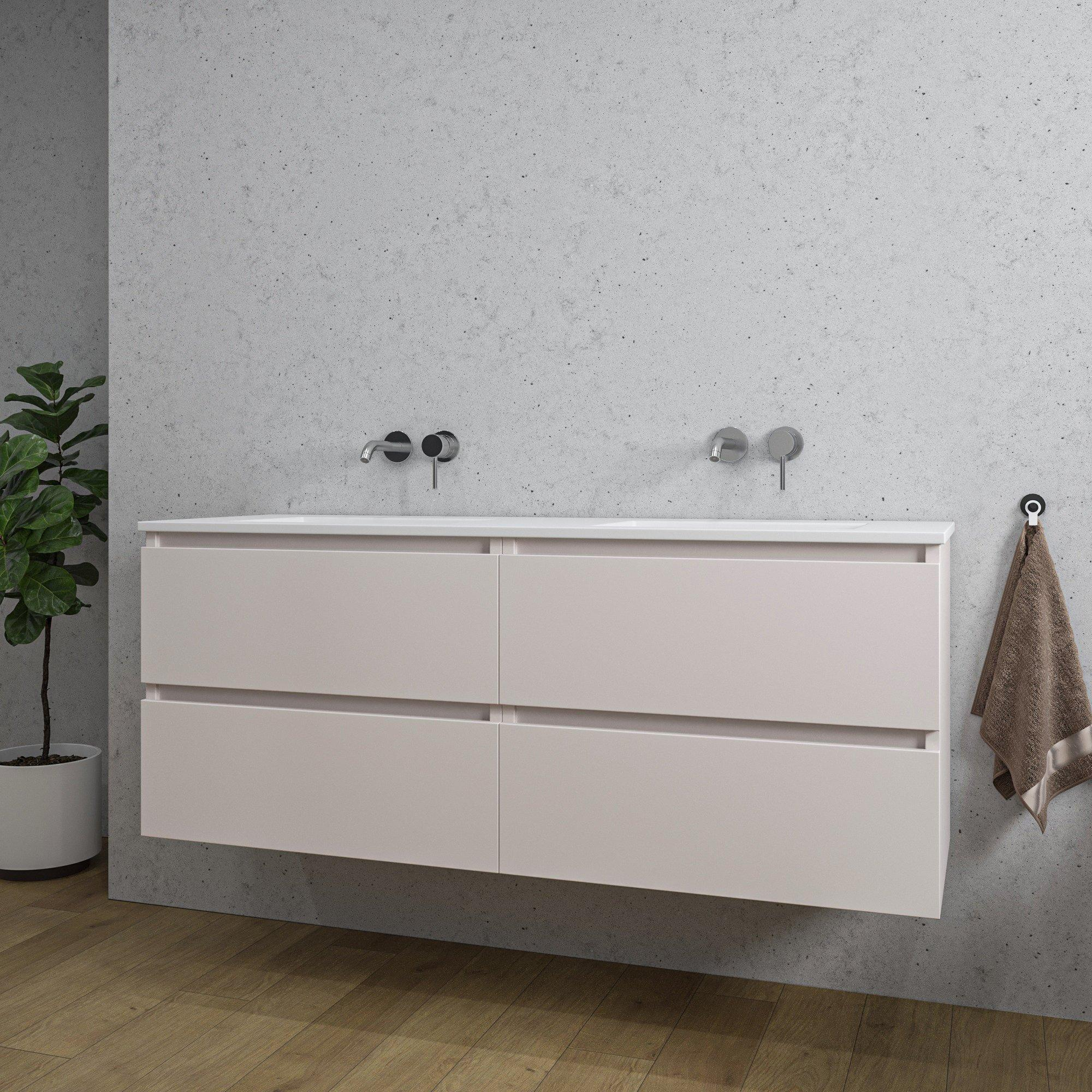 Adema Chaci Badkameronderkast - 140cm - 4 lades - greeploos - wit keramieke wastafel - overloop - 2 wasbakken - zonder kraangaten - mat cotton (beige)