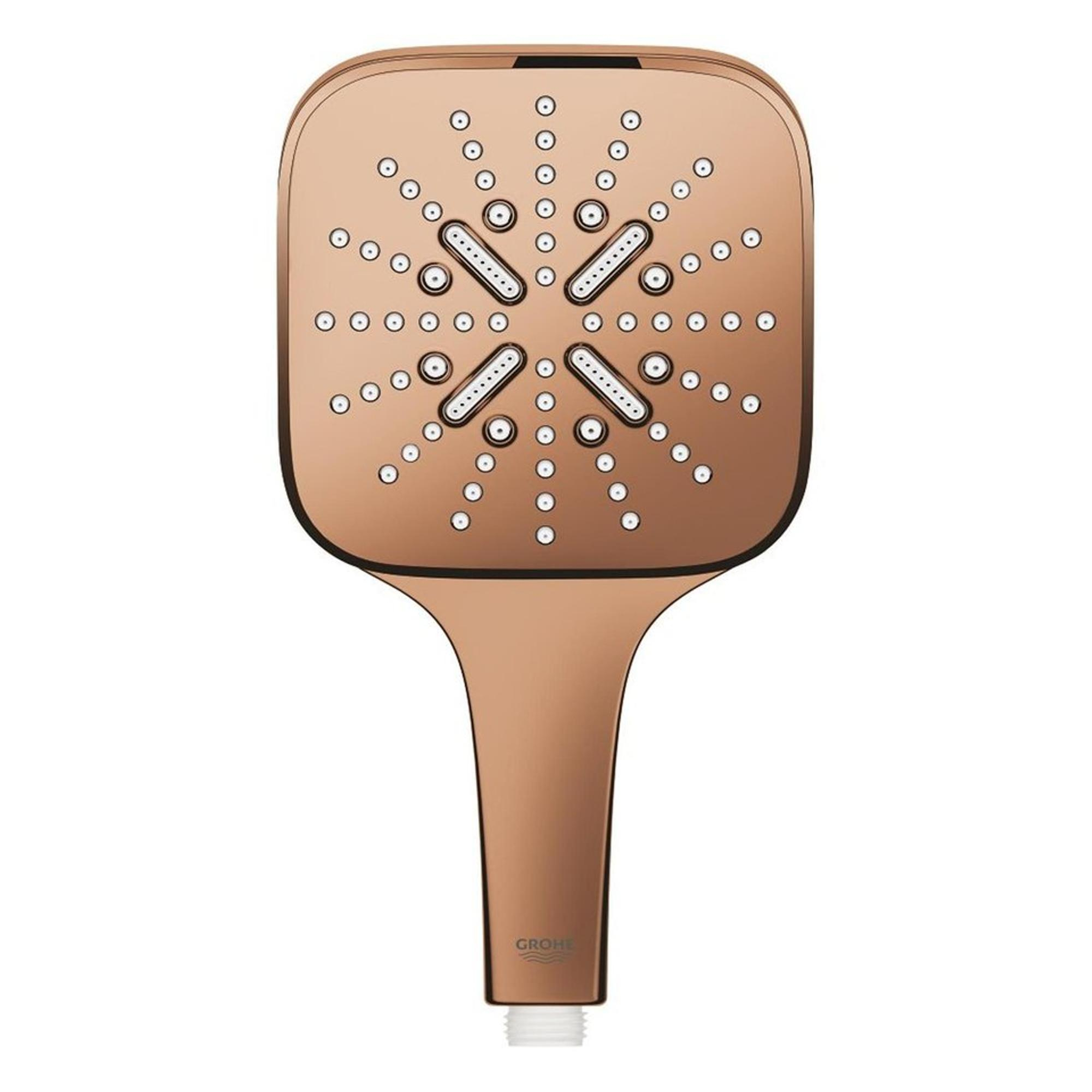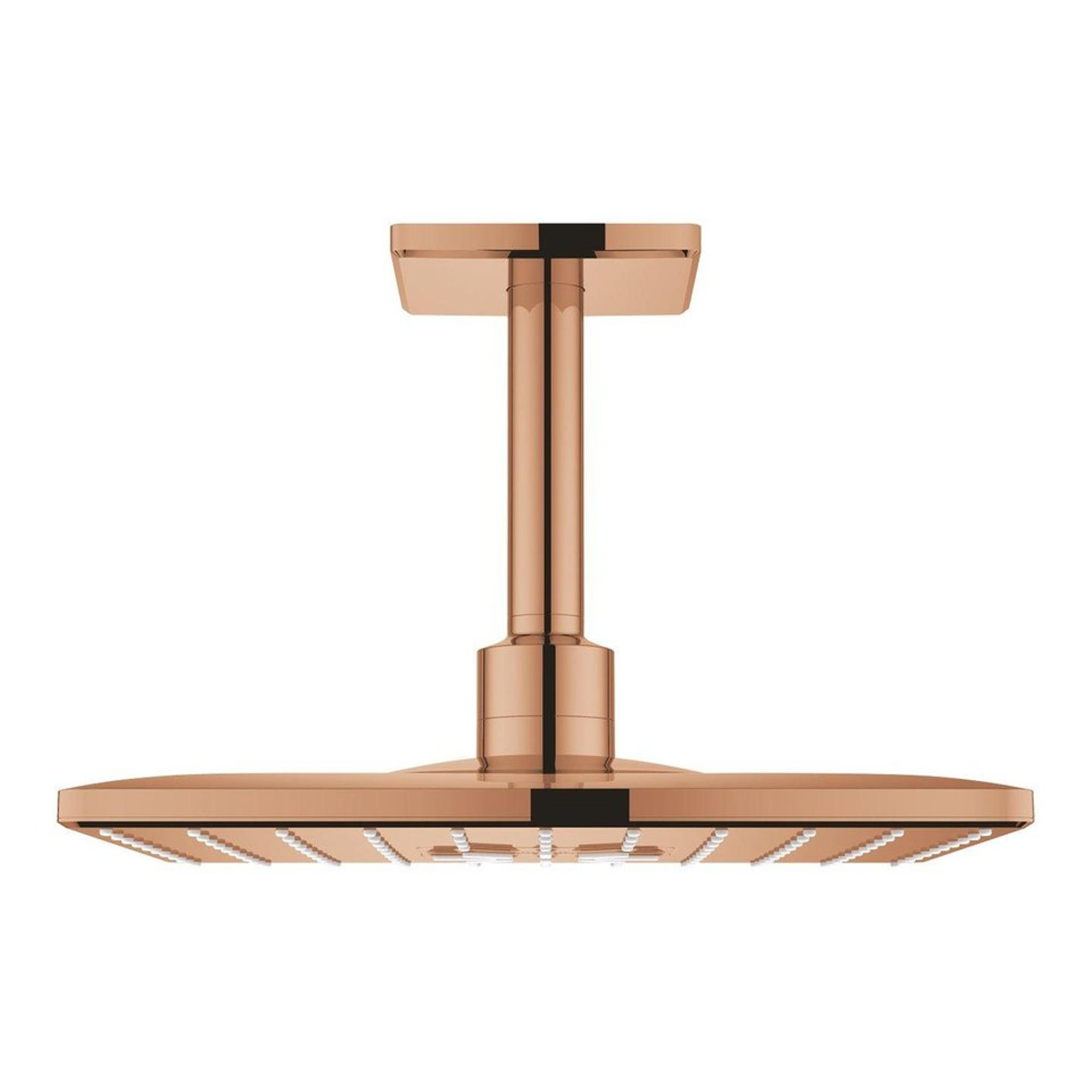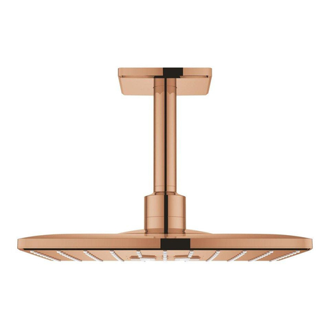 De GROHE Rainshower Smartactive Regendoucheset Opbouw is ontworpen met oog voor detail en stijl. De vierkante vormen en warm sunset afwerking geven een moderne en luxe uitstraling aan je badkamer. Deze doucheset voegt een vleugje elegantie toe aan elke douche-ervaring, waardoor je je elke dag als in een spa voelt.