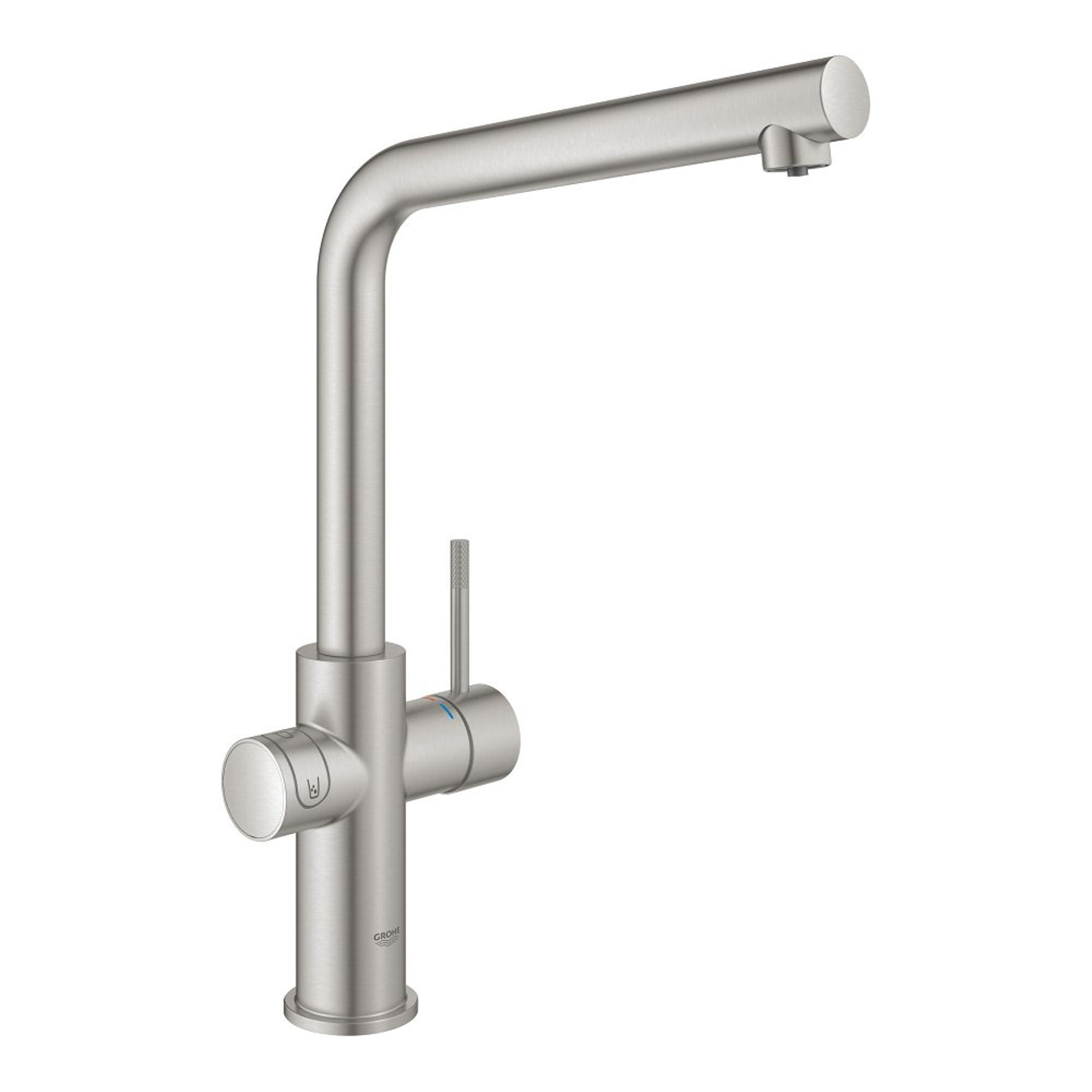 Met Chilled en Sparkling opties die 3x gekoeld en 3x bruisend water leveren, brengt de GROHE Blue Home Keukenkraan een nieuwe dimensie van verfrissing in je keuken. Of je nu gasten ontvangt of gewoon van een moment voor jezelf geniet, deze kraan biedt de perfecte oplossing om van elk drankje een speciale traktatie te maken.