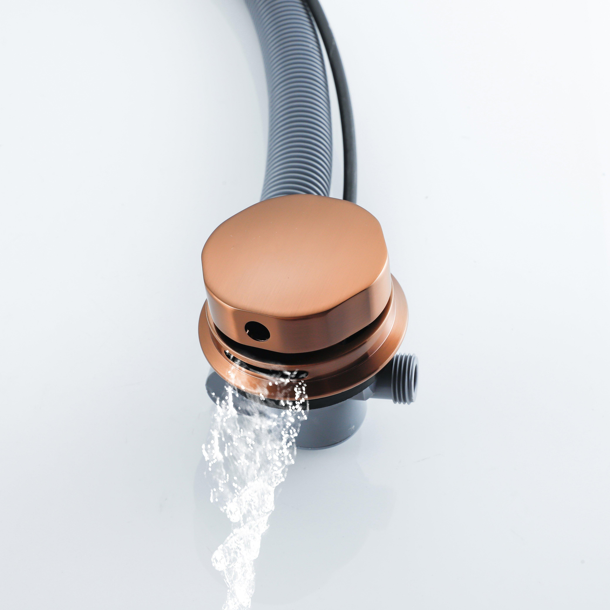 Met zijn strakke lijnen en eigentijdse uitstraling past de Fortifura Calvi badafvoer opbouw perfect in moderne badkamers. Het geborsteld koperen oppervlak geeft een luxe en trendy uitstraling, terwijl de draaibediening en vulfunctie een vleugje innovatie toevoegen aan het ontwerp. Deze badafvoer combineert functionaliteit met design, waardoor het een essentieel element wordt in elke eigentijdse badkamer.
