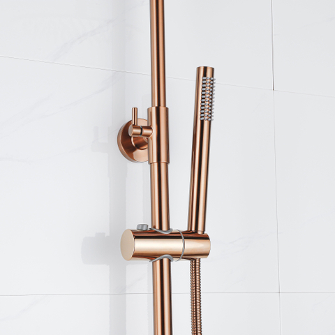 De afwerking in geborsteld koper PVD geeft de doucheset een luxe uitstraling en is bovendien zeer duurzaam en onderhoudsvriendelijk. Dit hoogwaardige materiaal is bestand tegen krassen en corrosie, waardoor jouw doucheset er jarenlang prachtig uitziet.