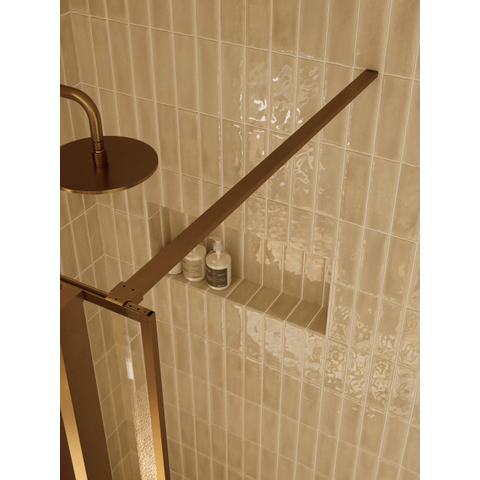 Met zijn koperen matte afwerking straalt de Riho Define Stabilisatiestang een elegantie uit die de uitstraling van uw badkamer naar een hoger niveau tilt. De strakke lijnen en moderne uitstraling van deze stang zorgen voor een tijdloze en chique toevoeging aan uw badkamerinterieur.
