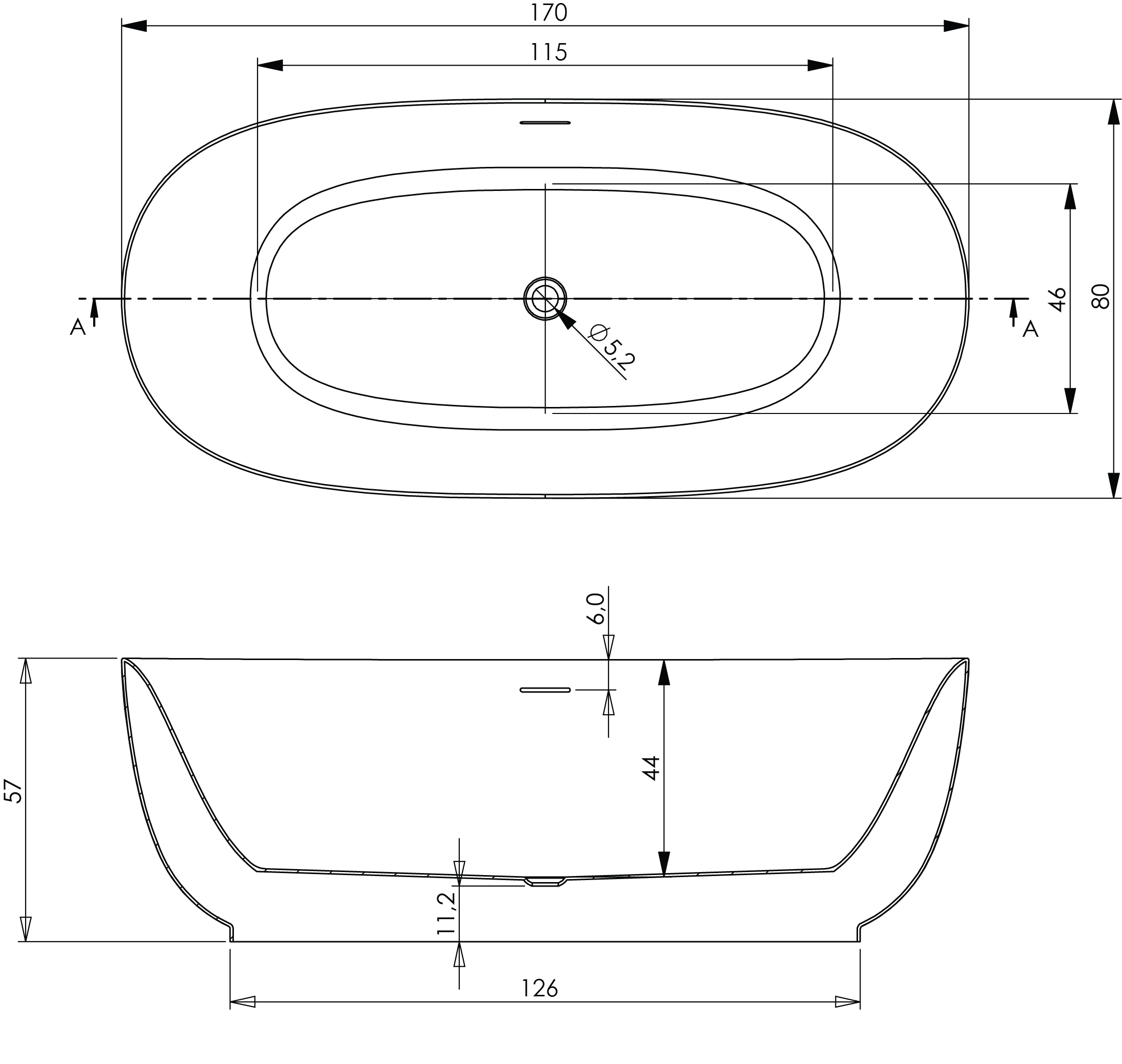 Riho Phatos Vrijstaand Bad - 170x80cm - Acryl - Mat wit