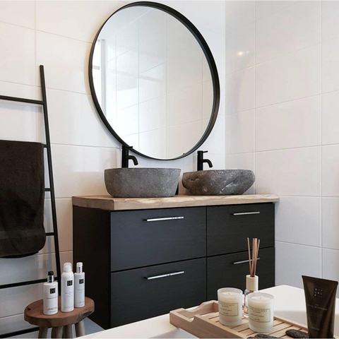 Deze spiegel straalt elegantie uit in elke ruimte waarin hij wordt geplaatst. Het ronde ontwerp zorgt voor een zachte en verfijnde uitstraling, terwijl het mat zwarte frame een vleugje moderniteit toevoegt. Of het nu boven een wastafel of in een make-up hoekje is, deze spiegel voegt een vleugje klasse toe aan elke omgeving.