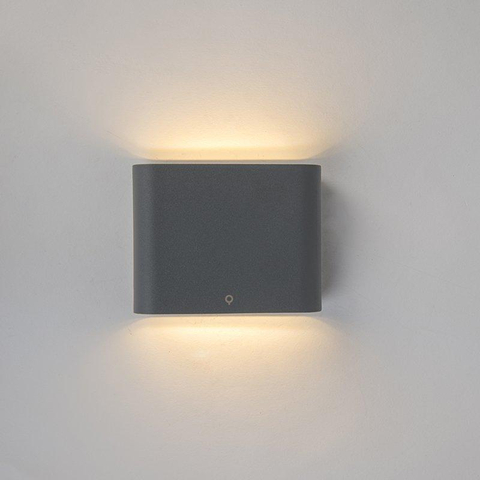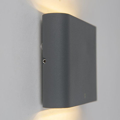 QAZQA Batt wandlamp - 11.5x9x3cm - incl. LED - IP65 - mat donkergrijs