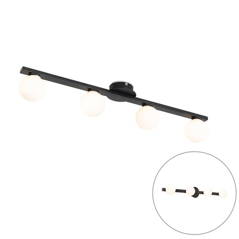 QAZQA Cederic badkamer plafondlamp - 68x10x13cm - 4 lichts - rond - mat zwart