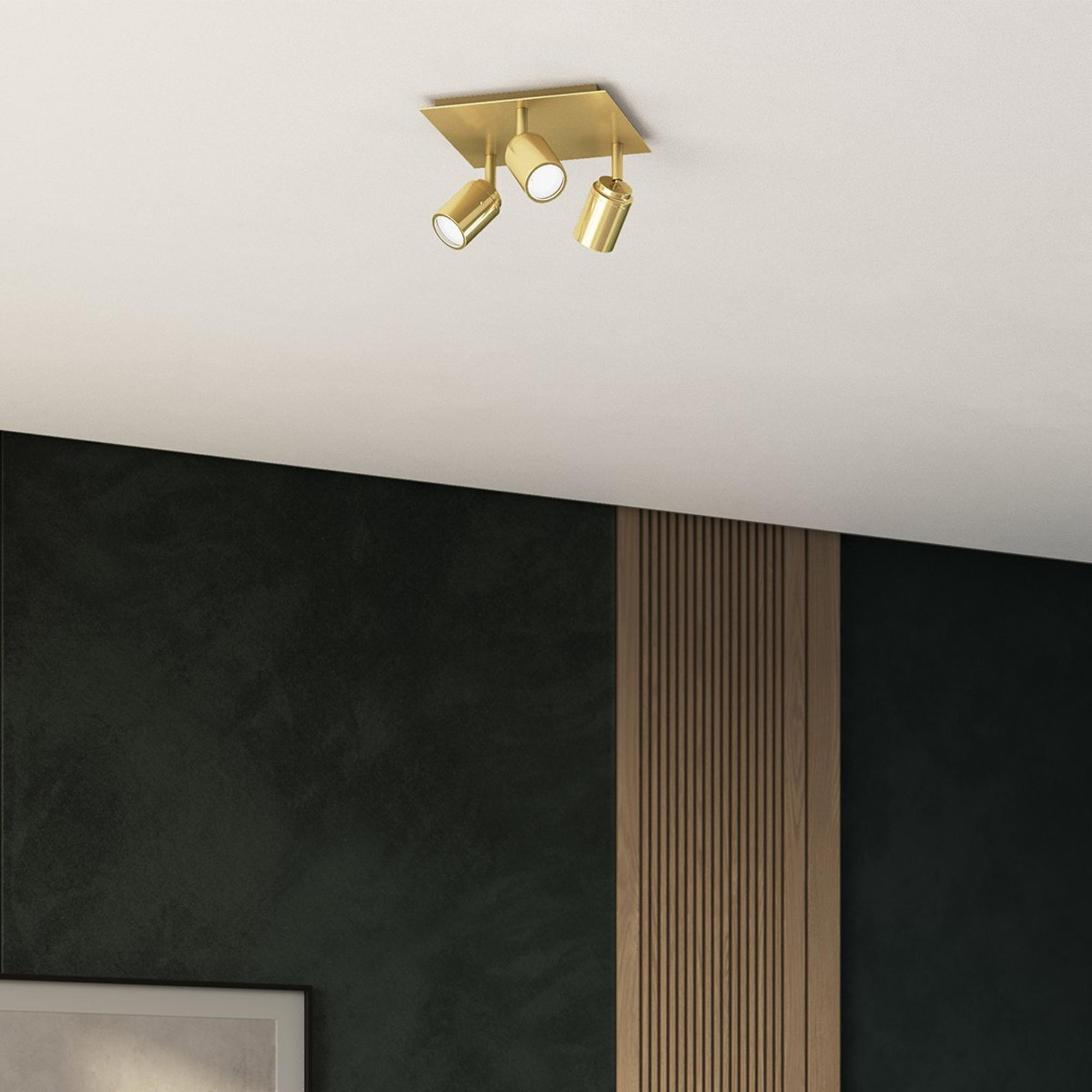 QAZQA Ducha badkamer plafondlamp - 23x23cm - 3 spots - IP44 - vierkant - messing (goud)