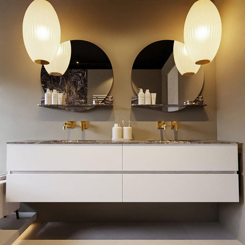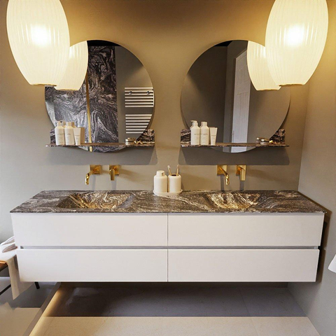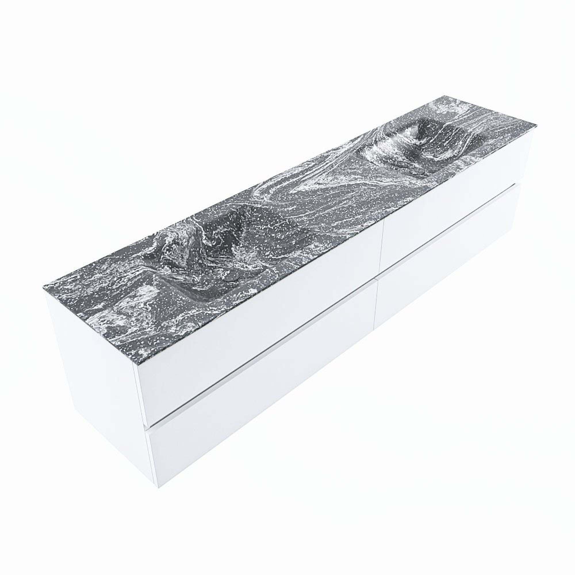 Mondiaz VICA-DLUX Badkamermeubelset - 200cm - talc - 4 lades - Inbouw wastafel CLOUD - dubbel zonder kraangat - kleur Lava - XL versie 60cm hoog
