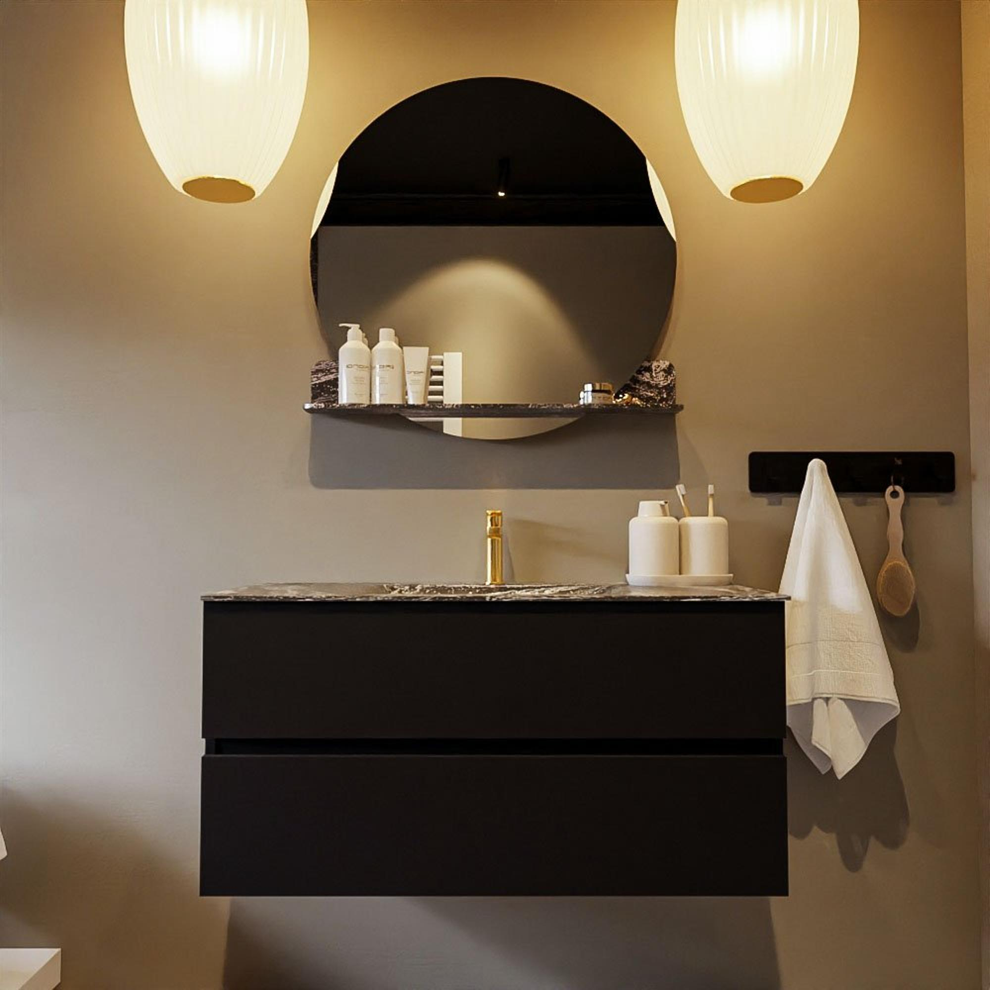 Mondiaz VICA-DLUX Badkamermeubelset - 100cm - urban - 2 lades - Inbouw wastafel CLOUD - midden - 1 kraangat - kleur Lava - XL versie 60cm hoog