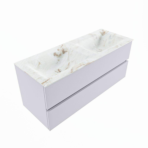 Mondiaz VICA-DLUX Badkamermeubelset - 120cm - cale - 2 lades - Inbouw wastafel CLOUD - dubbel zonder kraangat - kleur Frappe - XL versie 60cm hoog