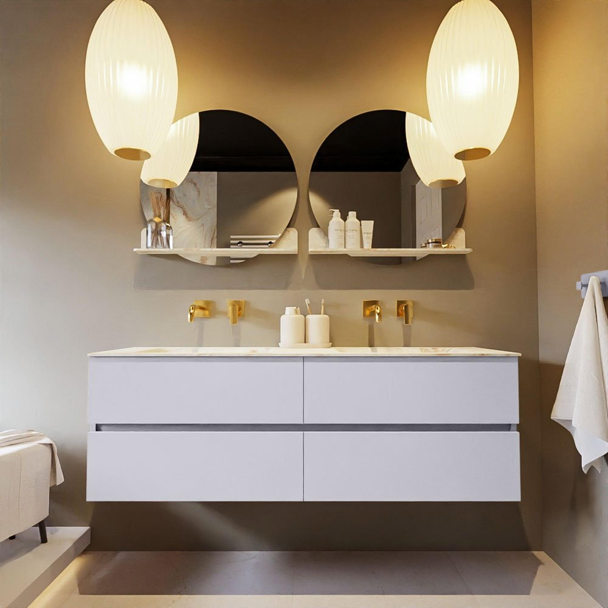 Mondiaz VICA-DLUX Badkamermeubelset - 150cm - cale - 4 lades - Inbouw wastafel CLOUD - dubbel zonder kraangat - kleur Frappe - XL versie 60cm hoog