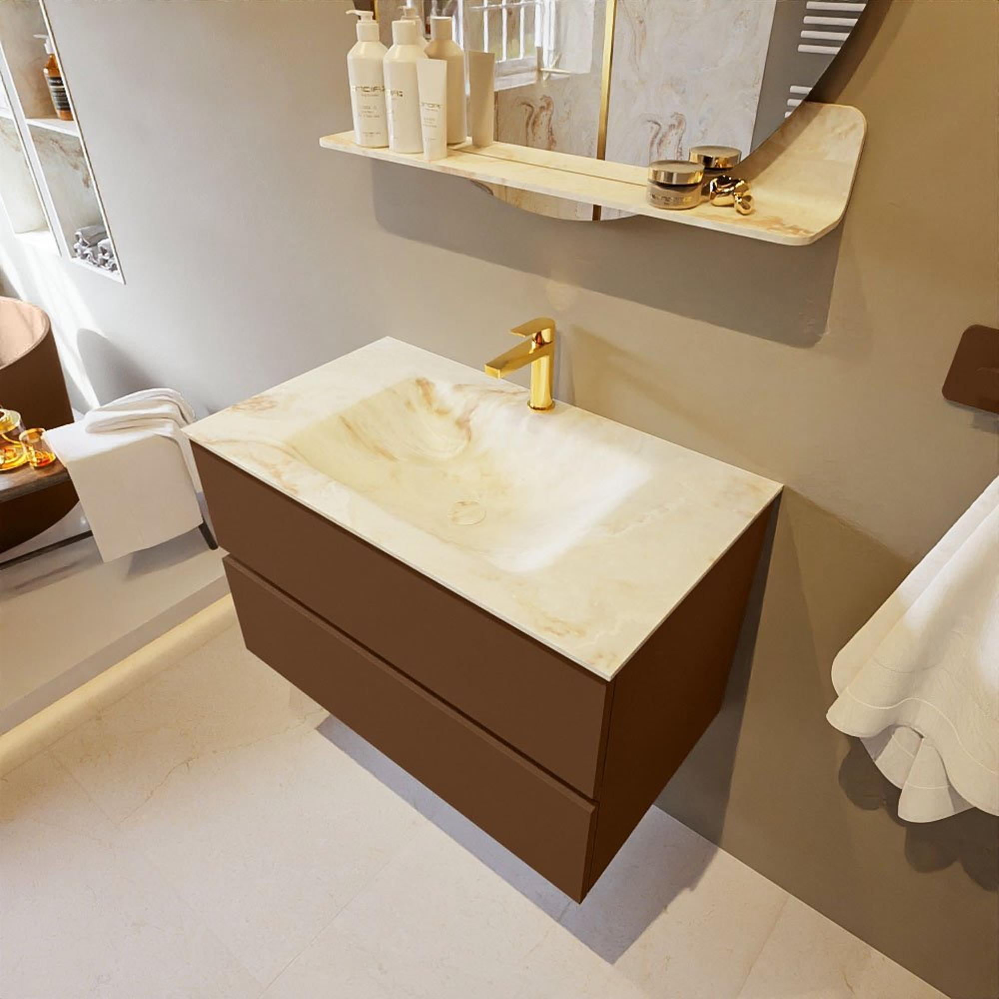 Mondiaz VICA-DLUX Badkamermeubelset - 80cm - rust - 2 lades - Inbouw wastafel CLOUD - midden - 1 kraangat - kleur Frappe - XL versie 60cm hoog