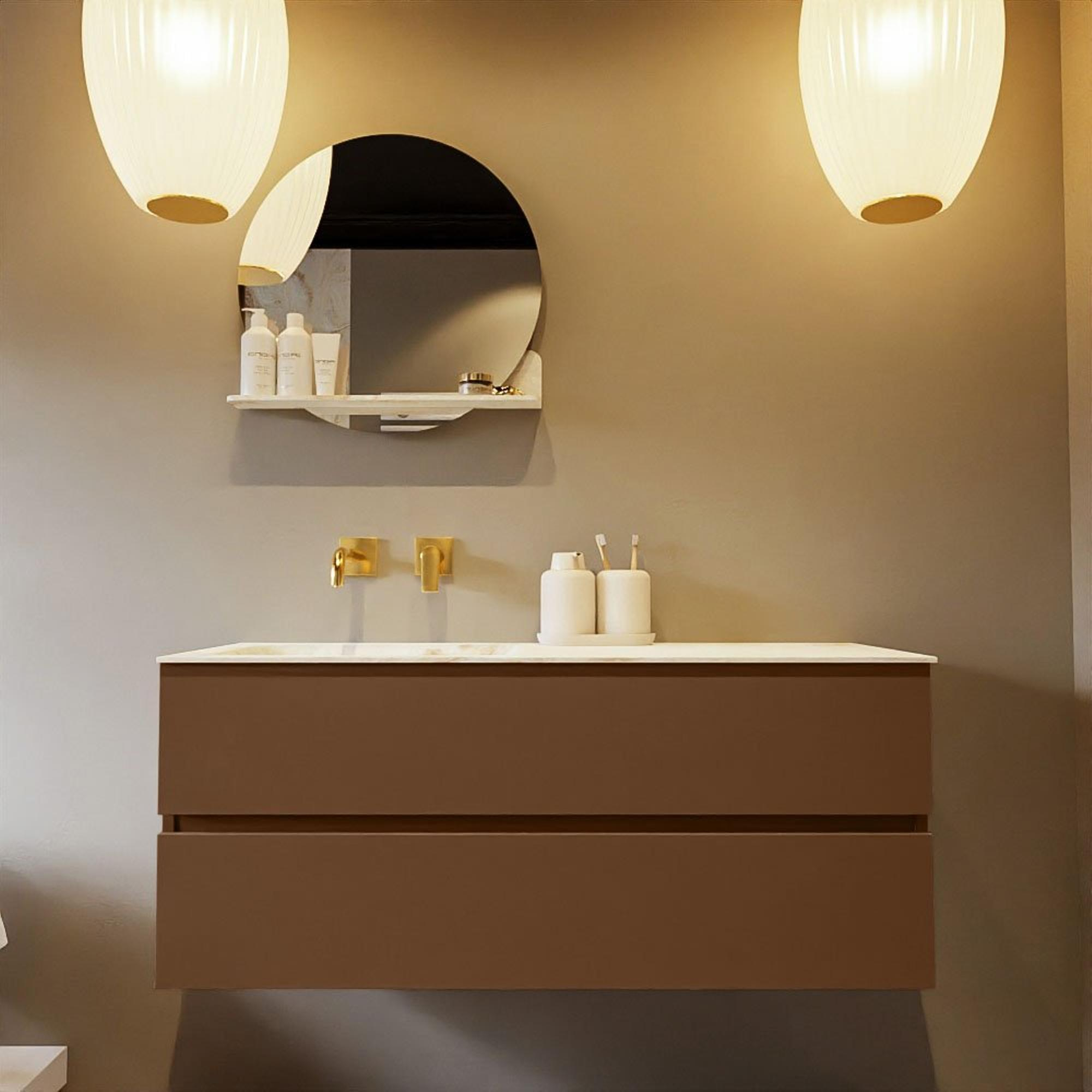 Mondiaz VICA-DLUX Badkamermeubelset - 120cm - rust - 2 lades - Inbouw wastafel CLOUD - links - zonder kraangat - kleur Frappe - XL versie 60cm hoog