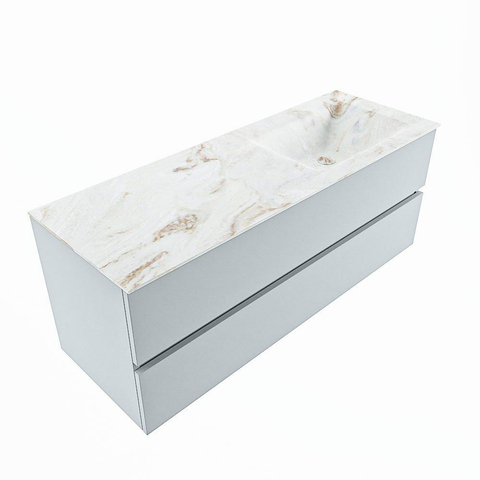 Mondiaz VICA-DLUX Badkamermeubelset - 130cm - clay - 2 lades - Inbouw wastafel CLOUD - rechts - 1 kraangat - kleur Frappe - XL versie 60cm hoog