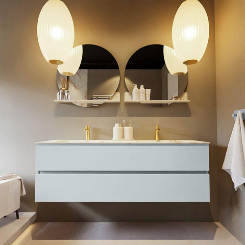 Mondiaz VICA-DLUX Badkamermeubelset - 150cm - clay - 2 lades - Inbouw wastafel CLOUD - dubbel 2 kraangaten - kleur Frappe - XL versie 60cm hoog