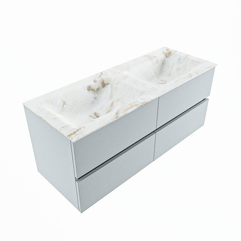 Mondiaz VICA-DLUX Badkamermeubelset - 120cm - clay - 4 lades - Inbouw wastafel CLOUD - dubbel zonder kraangat - kleur Frappe - XL versie 60cm hoog
