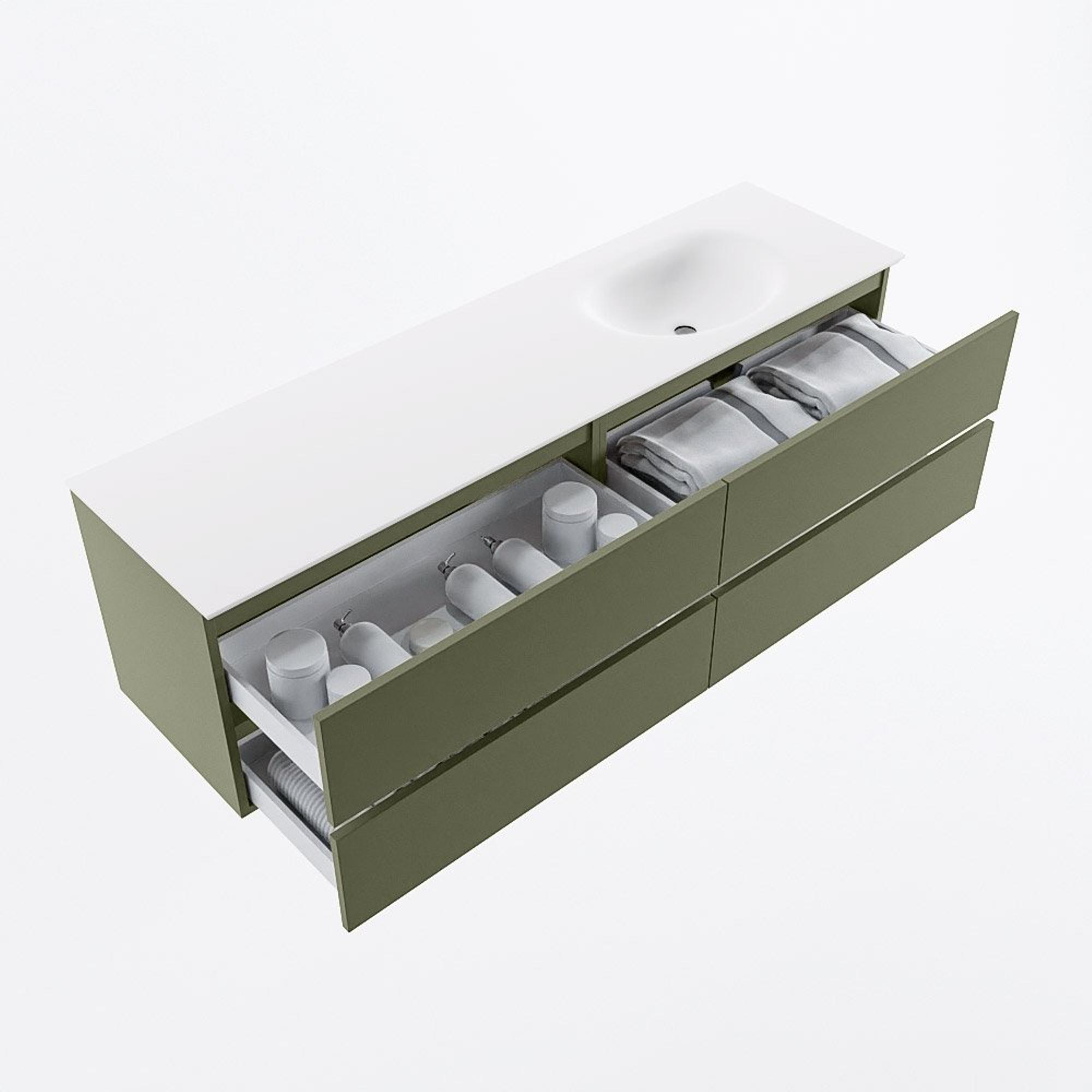 Mondiaz VICA Badkamermeubelset - 170cm - army - 4 lades - Wastafel MOON - rechts - 1 kraangat - kleur talc - XL versie 60cm hoog