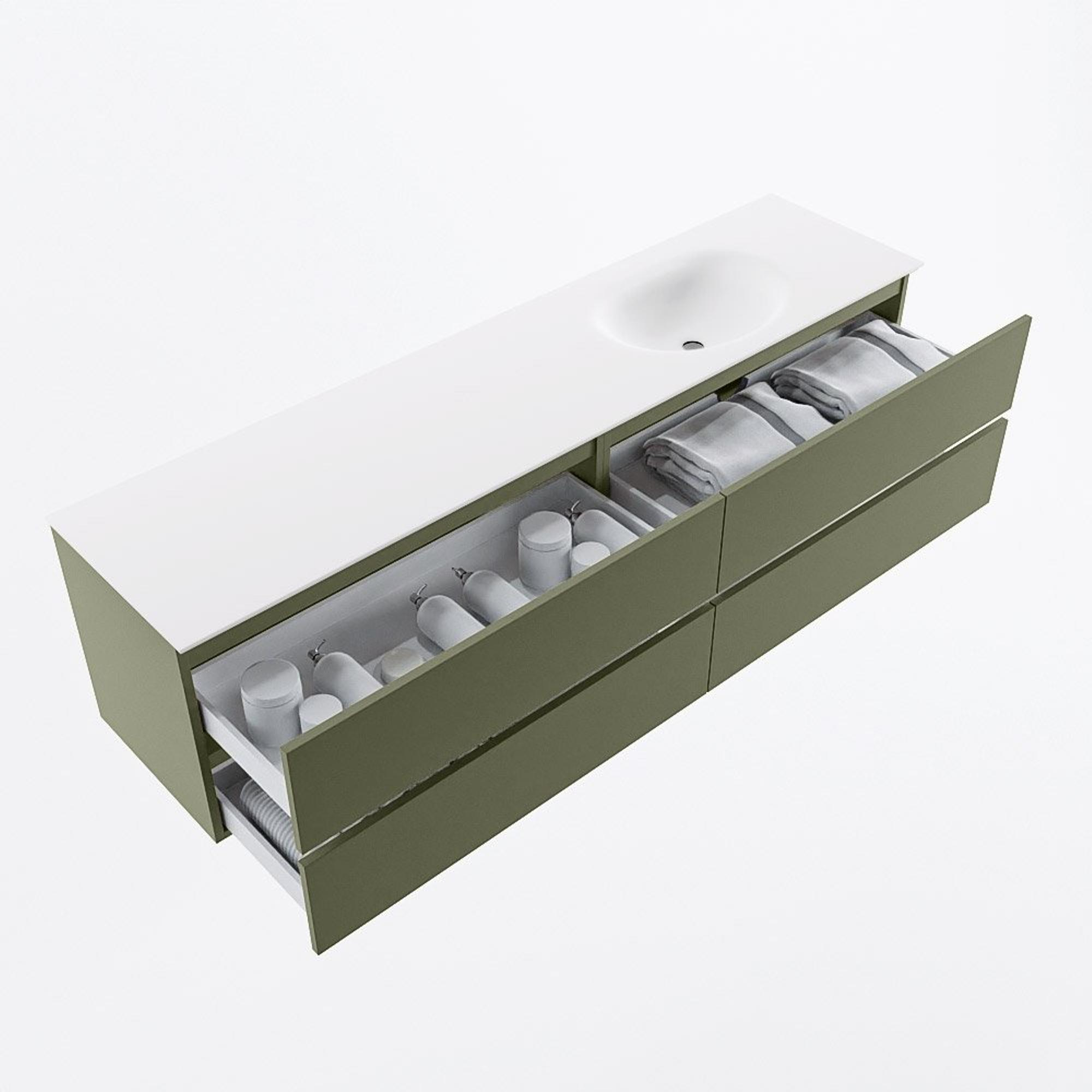 Mondiaz VICA Badkamermeubelset - 190cm - army - 4 lades - Wastafel MOON - rechts - 1 kraangat - kleur talc - XL versie 60cm hoog