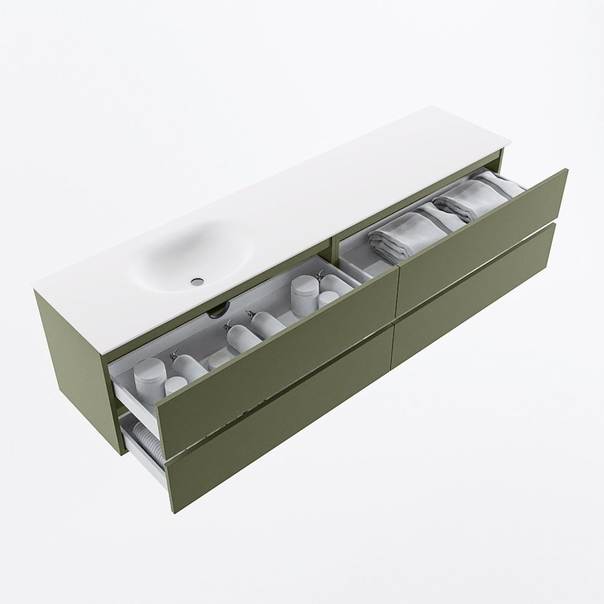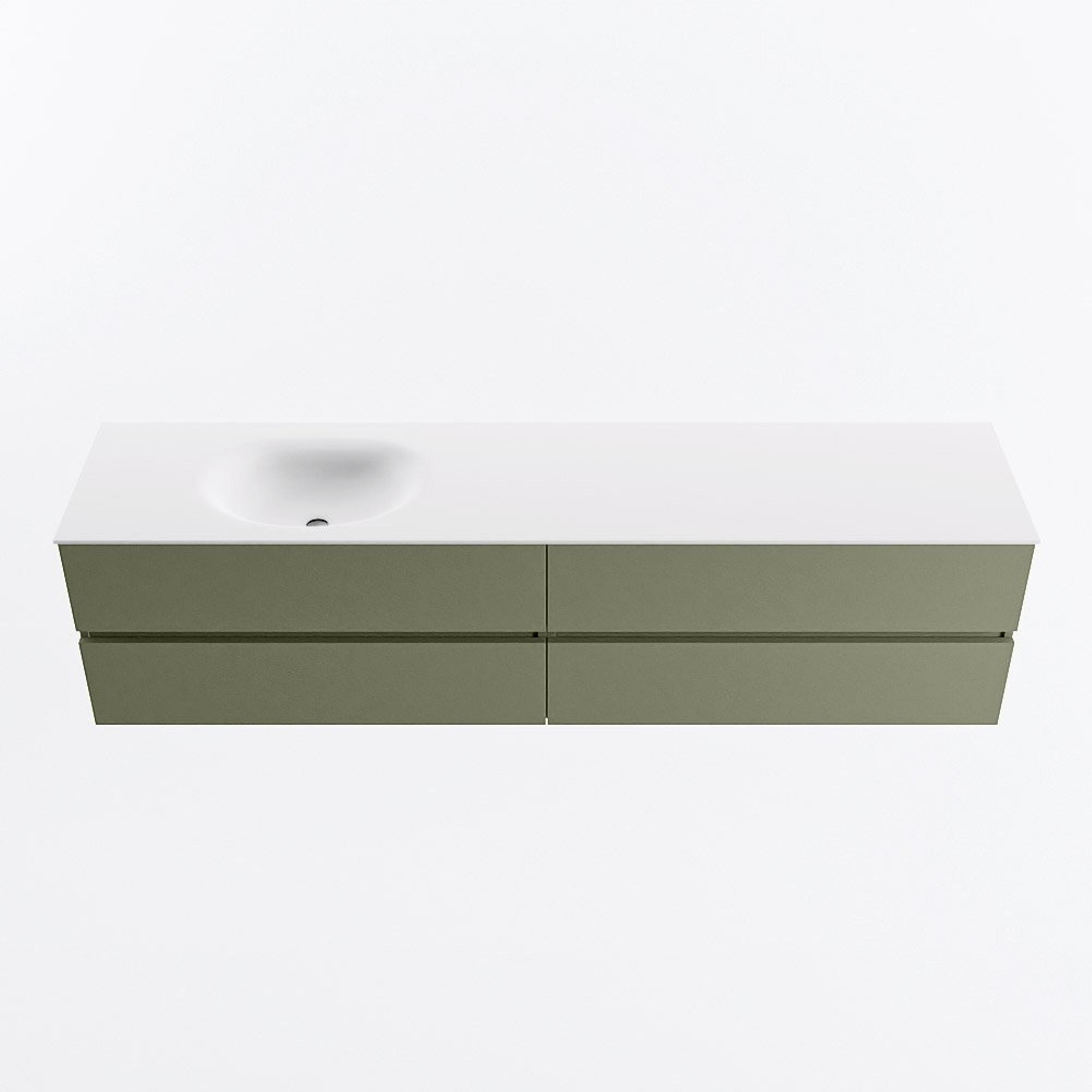 Mondiaz VICA Badkamermeubelset - 200cm - army - 4 lades - Wastafel MOON - links - zonder kraangat - kleur talc - XL versie 60cm hoog