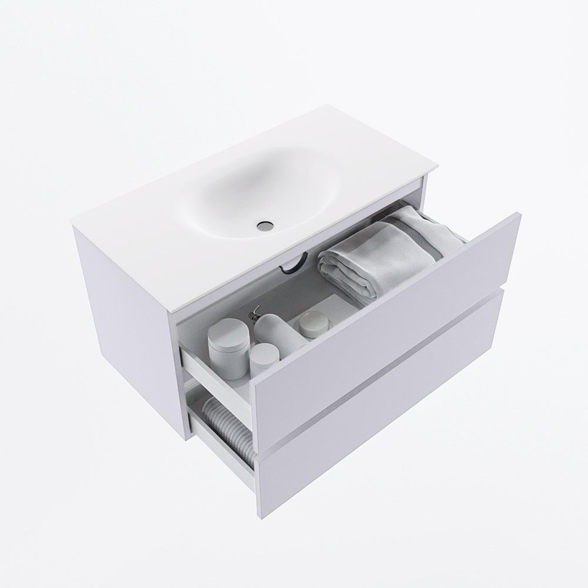 Mondiaz VICA Badkamermeubelset - 90cm - cale - 2 lades - Wastafel MOON - midden - zonder kraangat - kleur talc - XL versie 60cm hoog