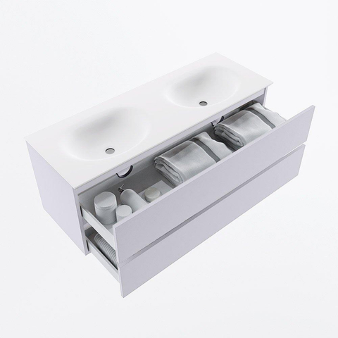 Mondiaz VICA Badkamermeubelset - 130cm - cale - 2 lades - Wastafel MOON - dubbel zonder kraangat - kleur talc - XL versie 60cm hoog