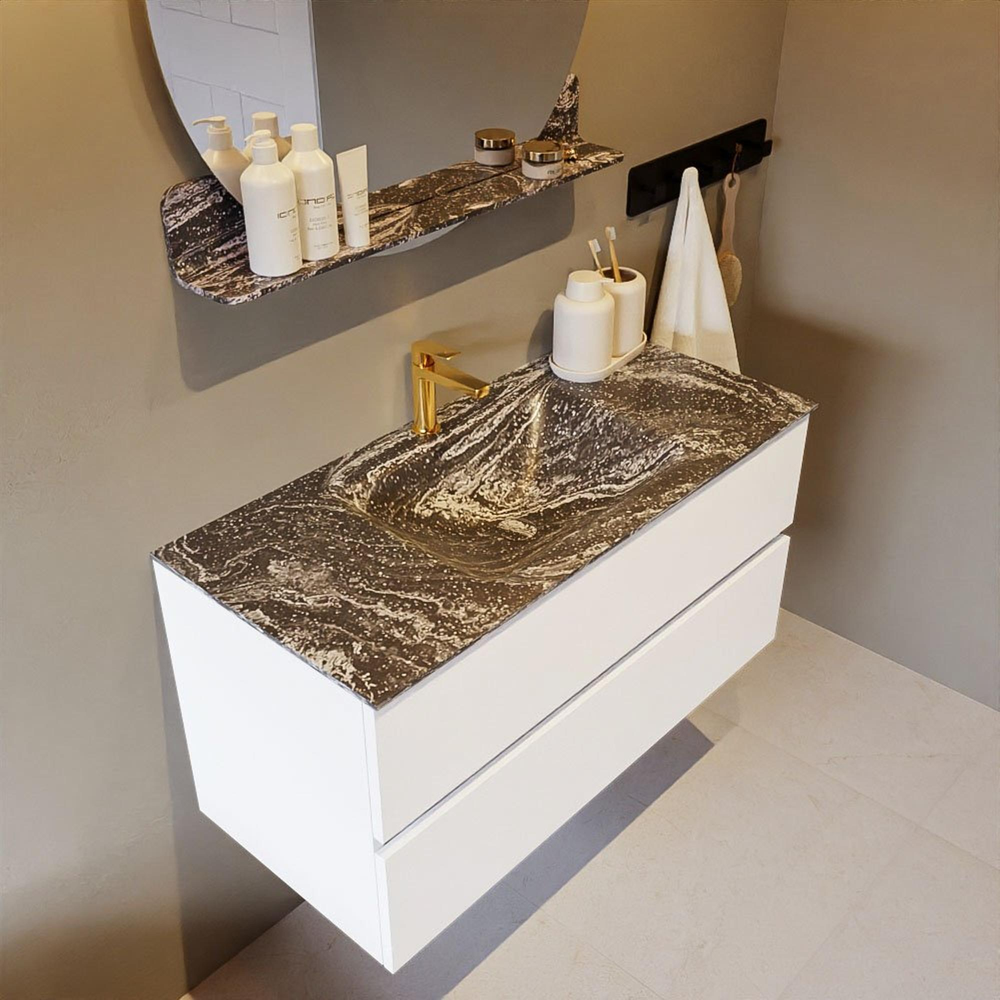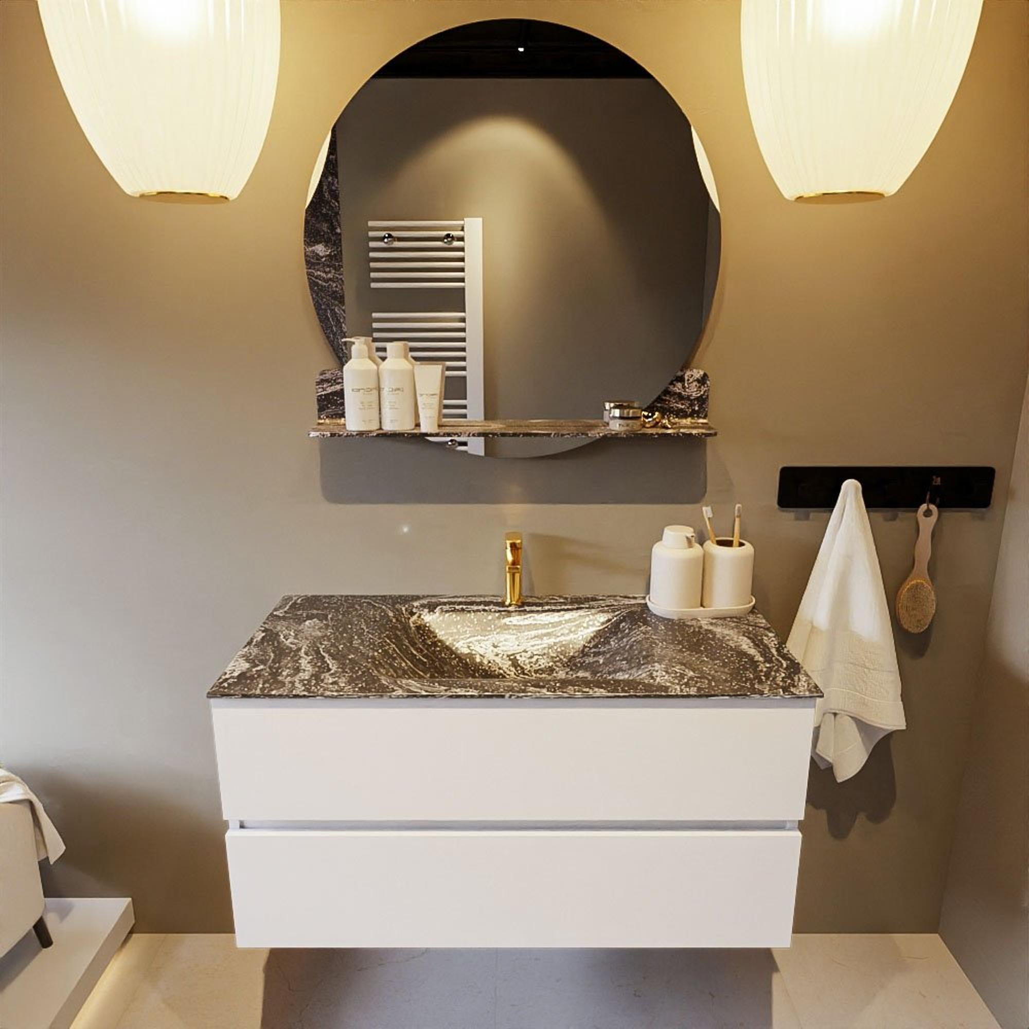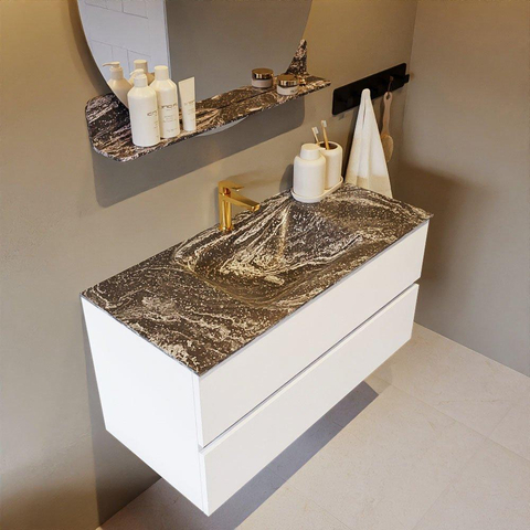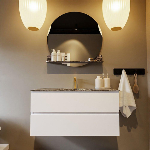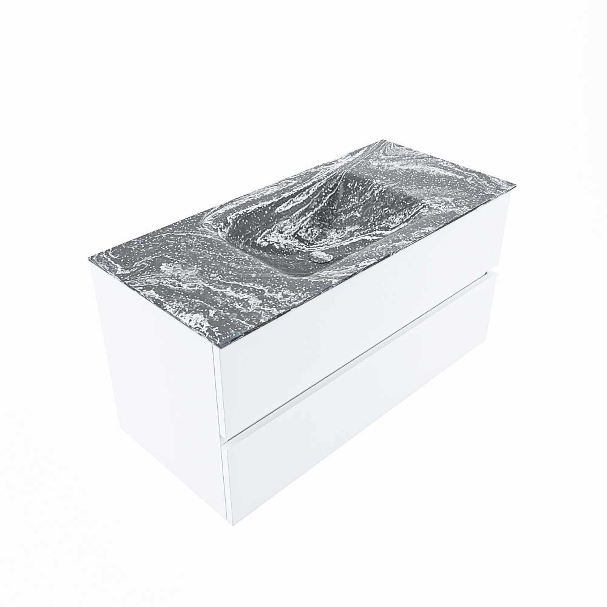 Mondiaz VICA-DLUX Badkamermeubelset - 100cm - talc - 2 lades - Inbouw wastafel CLOUD - midden - 1 kraangat - kleur Lava - XL versie 60cm hoog