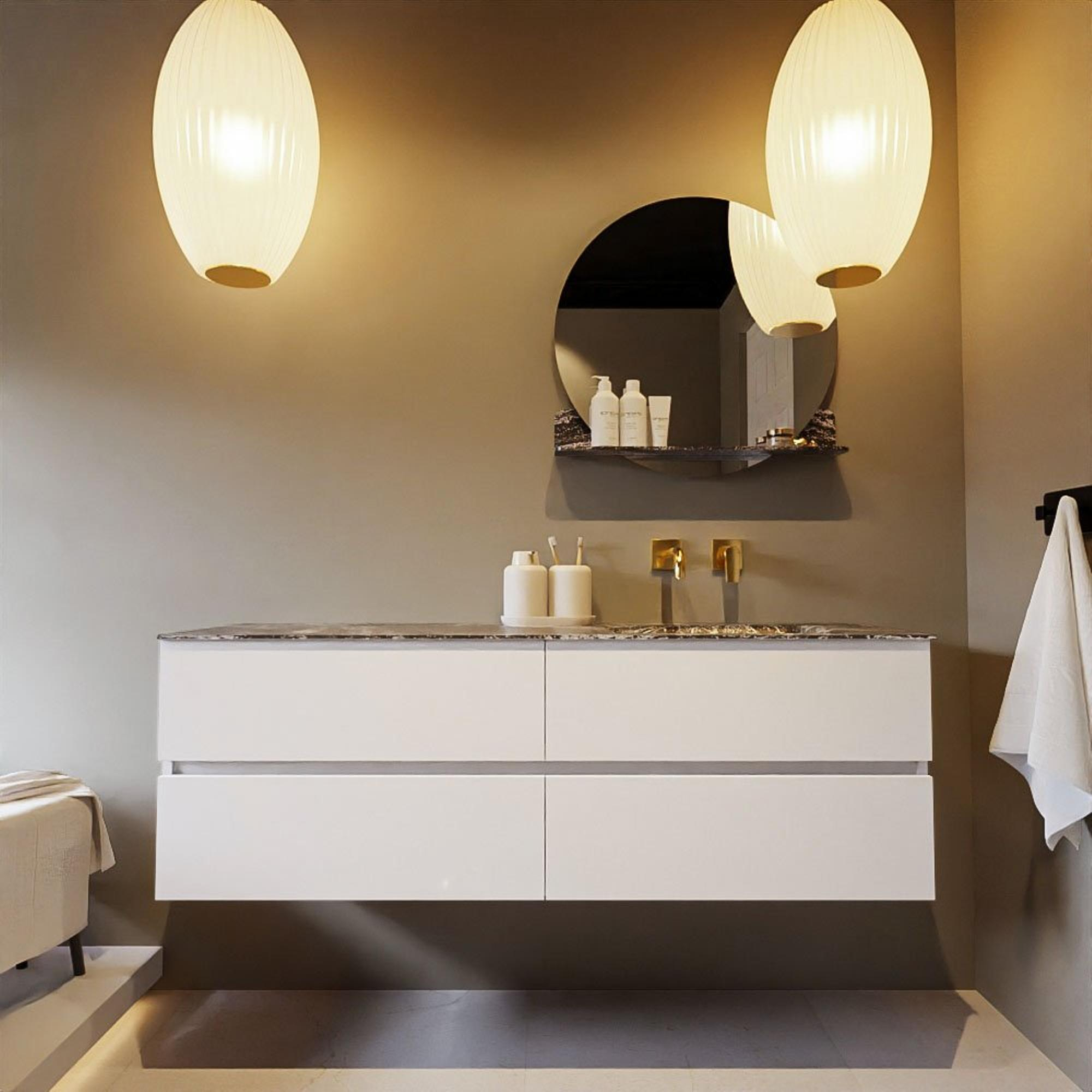 Mondiaz VICA-DLUX Badkamermeubelset - 150cm - talc - 4 lades - Inbouw wastafel CLOUD - rechts - zonder kraangat - kleur Lava - XL versie 60cm hoog