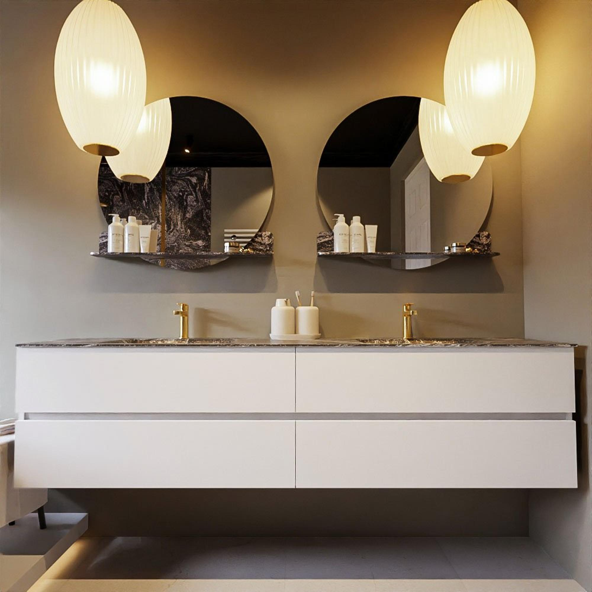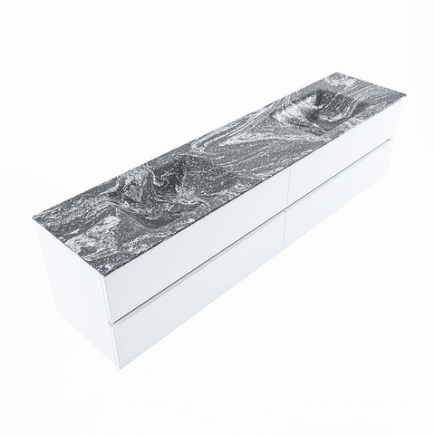 Mondiaz VICA-DLUX Badkamermeubelset - 200cm - talc - 4 lades - Inbouw wastafel CLOUD - dubbel 2 kraangaten - kleur Lava - XL versie 60cm hoog