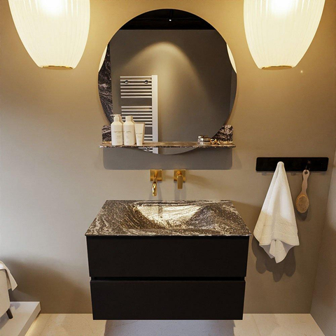 Mondiaz VICA-DLUX Badkamermeubelset - 80cm - urban - 2 lades - Inbouw wastafel CLOUD - midden - zonder kraangat - kleur Lava - XL versie 60cm hoog