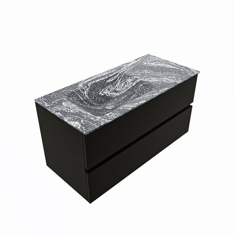 Mondiaz VICA-DLUX Badkamermeubelset - 100cm - urban - 2 lades - Inbouw wastafel CLOUD - links - zonder kraangat - kleur Lava - XL versie 60cm hoog