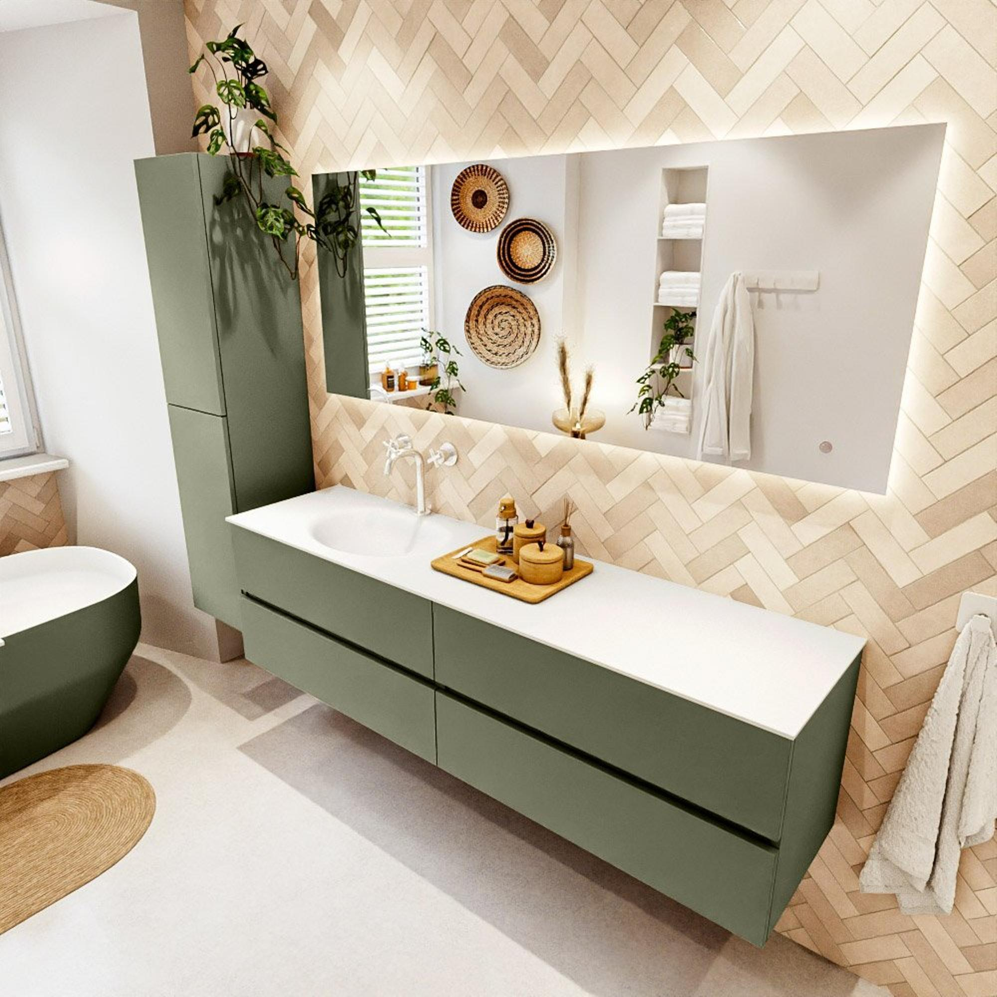 Mondiaz VICA Badkamermeubelset - 180cm - army - 4 lades - Wastafel MOON - links - 1 kraangat - kleur talc - XL versie 60cm hoog