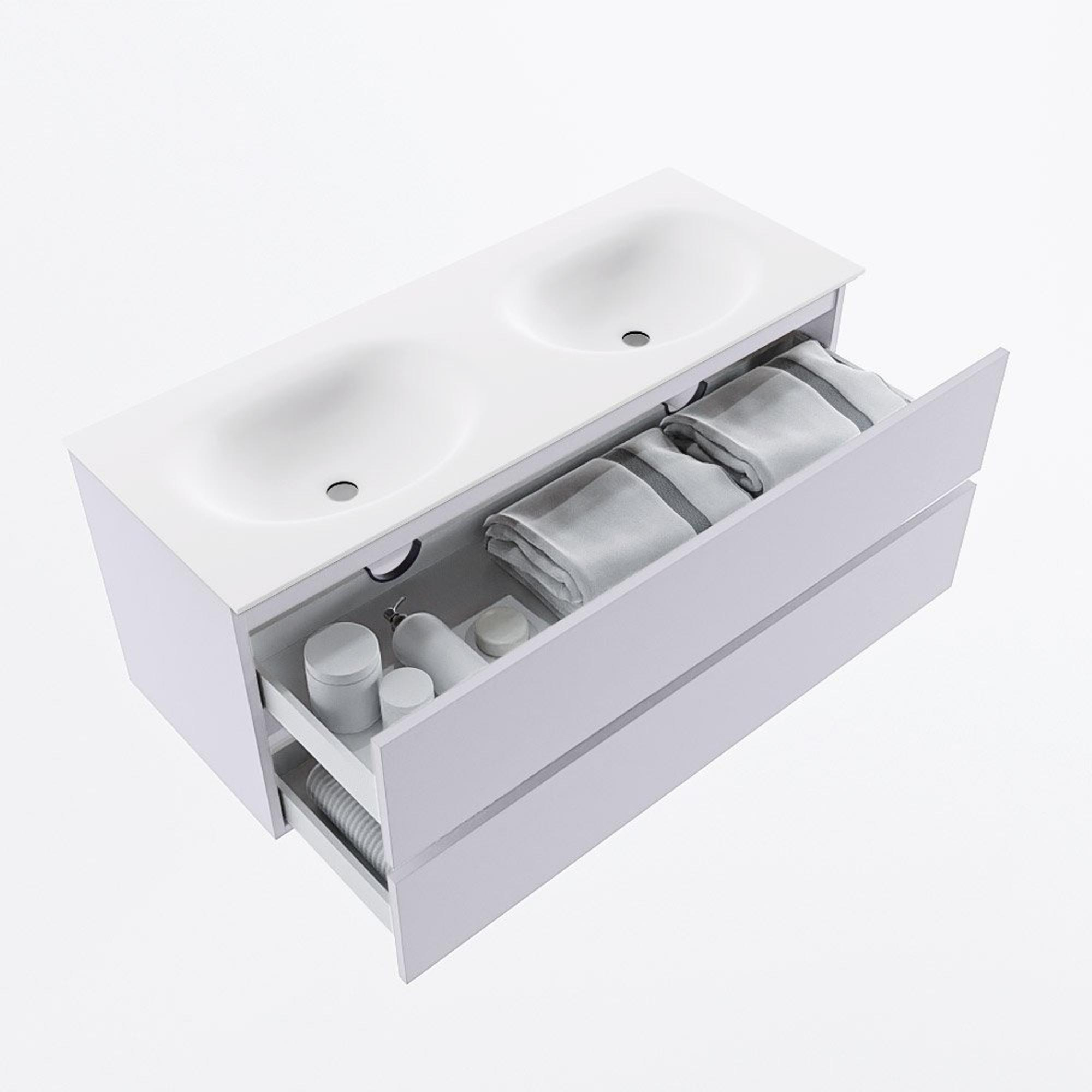 Mondiaz VICA Badkamermeubelset - 120cm - cale - 2 lades - Wastafel MOON - dubbel zonder kraangat - kleur talc - XL versie 60cm hoog