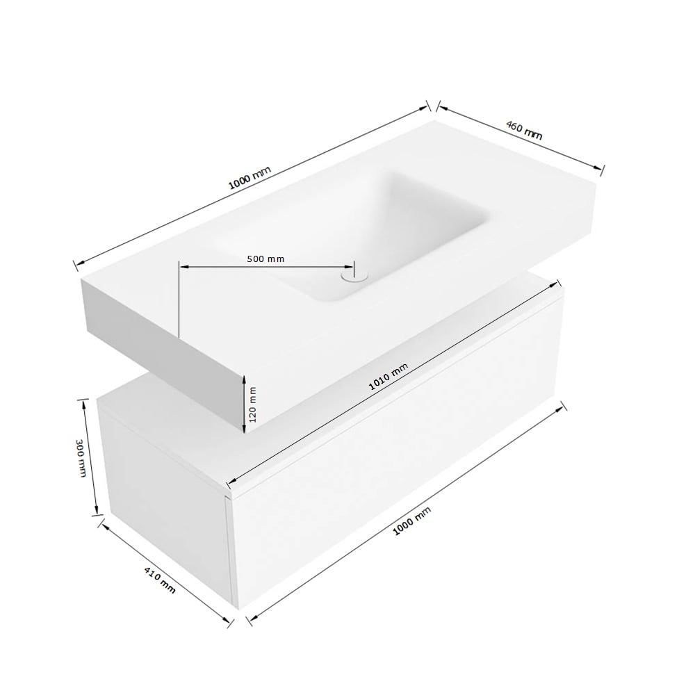 - Breedte wastafel: 100cm
