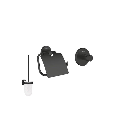 GROHE Essentials Toiletaccessoires - toiletrolhouder - met klep - toiletborstel - handdoekhaak - matte black